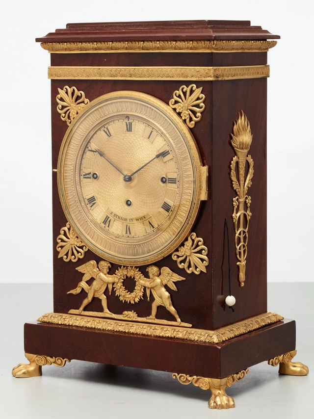 A Viennese bronze guilded miniature Empire mantel clock, circa 1810