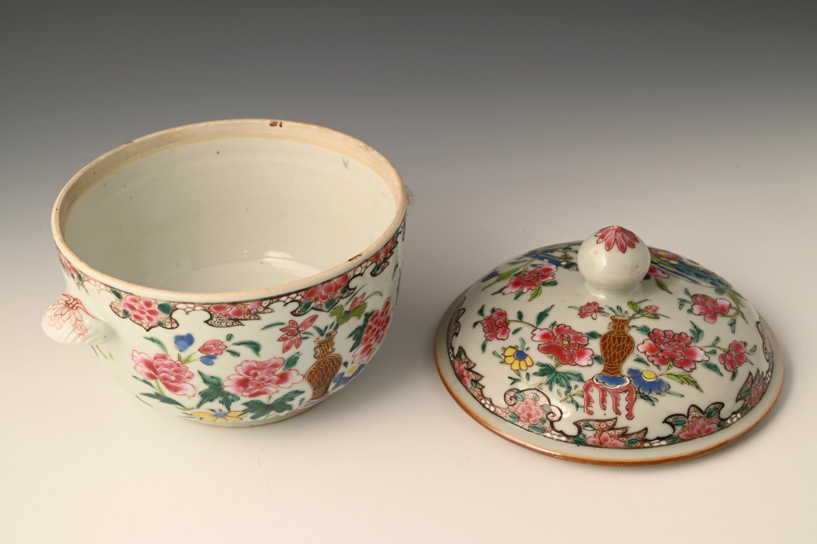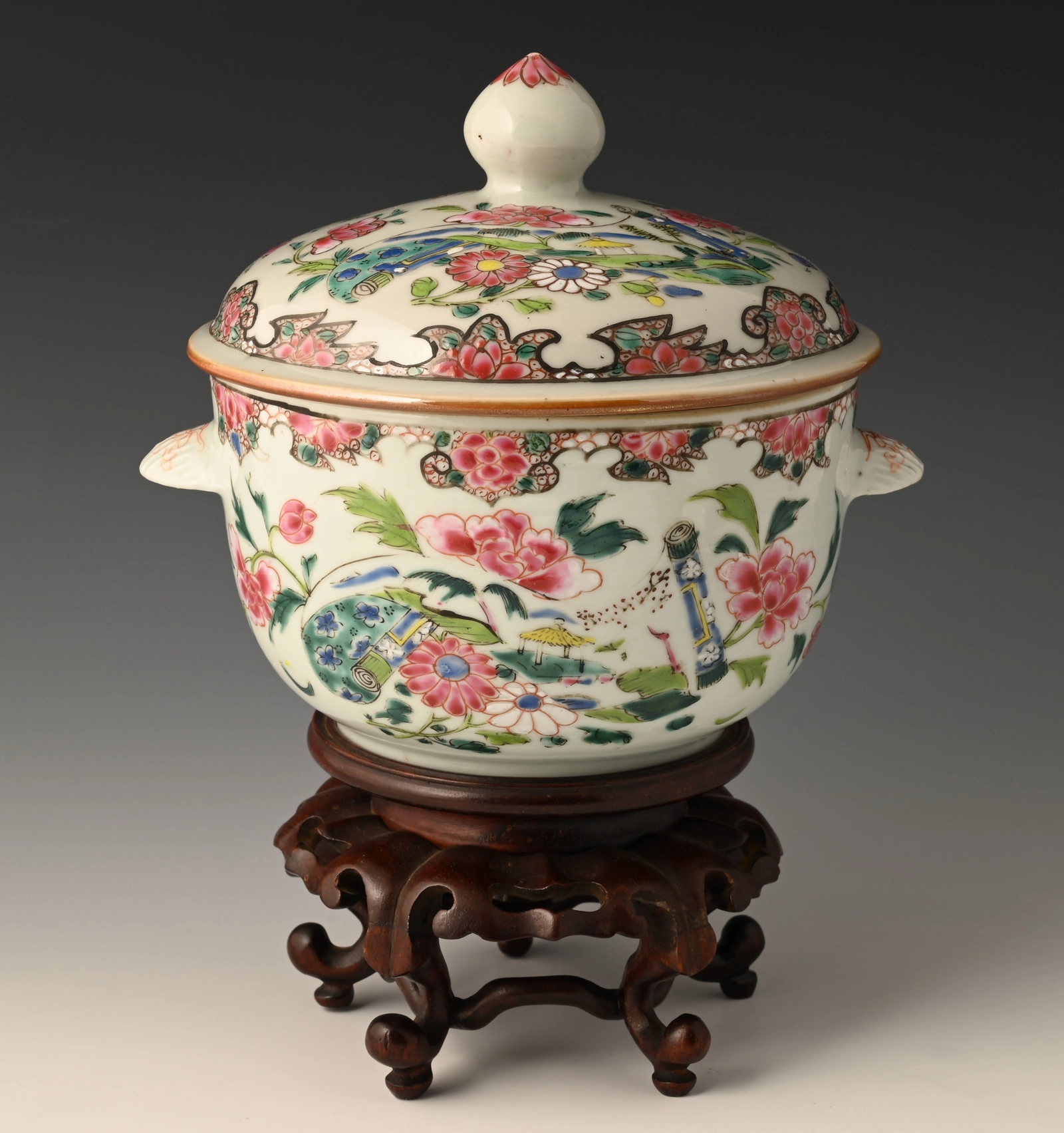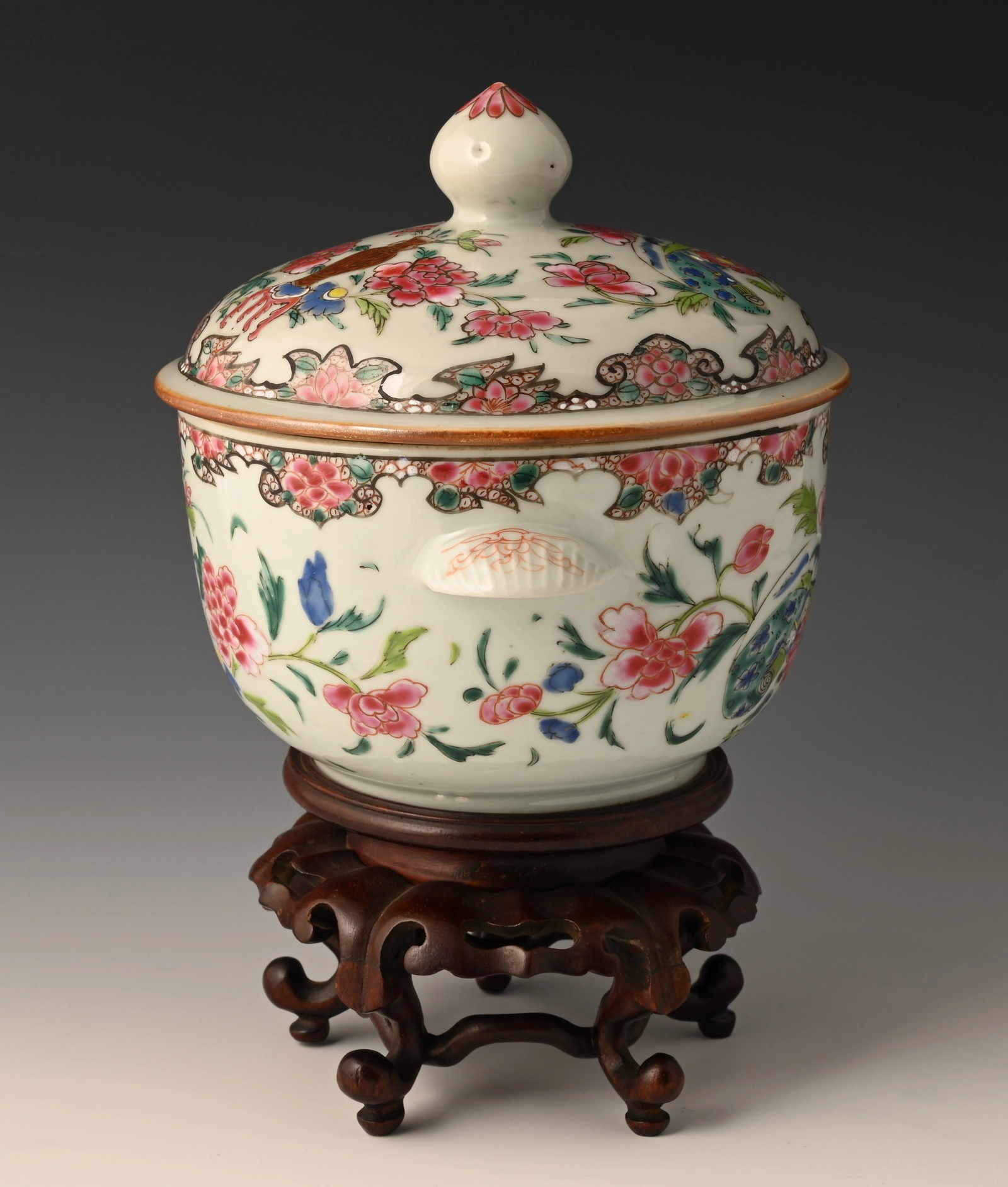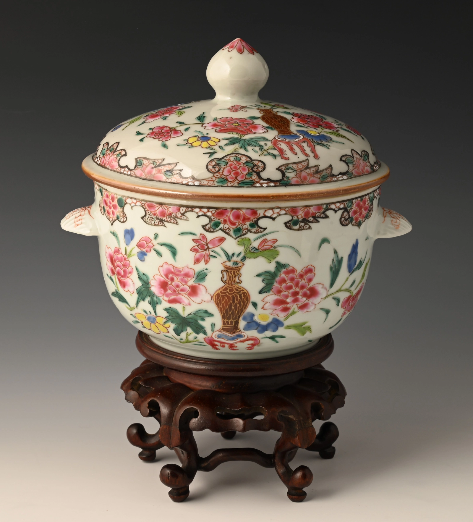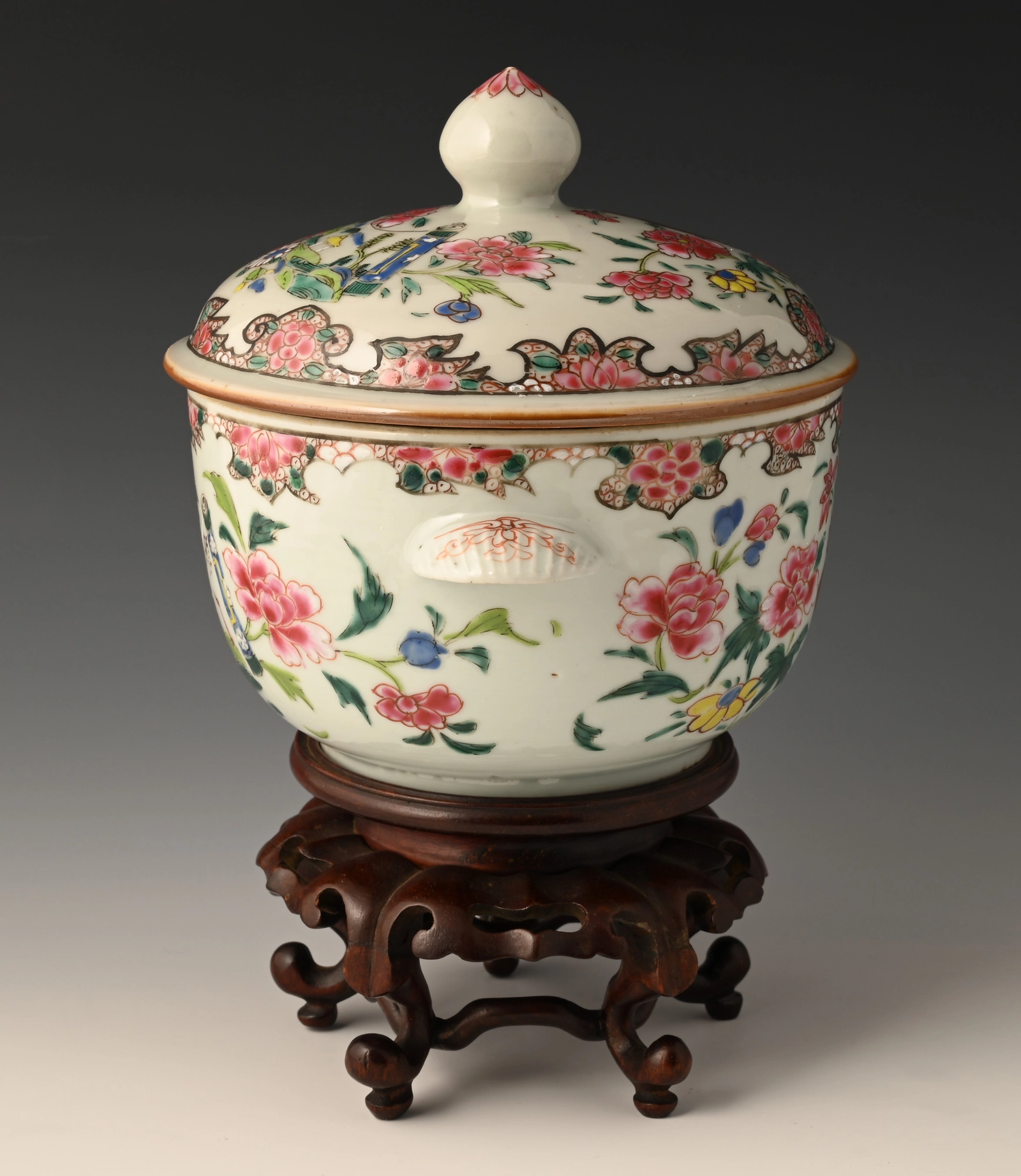 A Chinese porcelain Famille Rose lidded jar