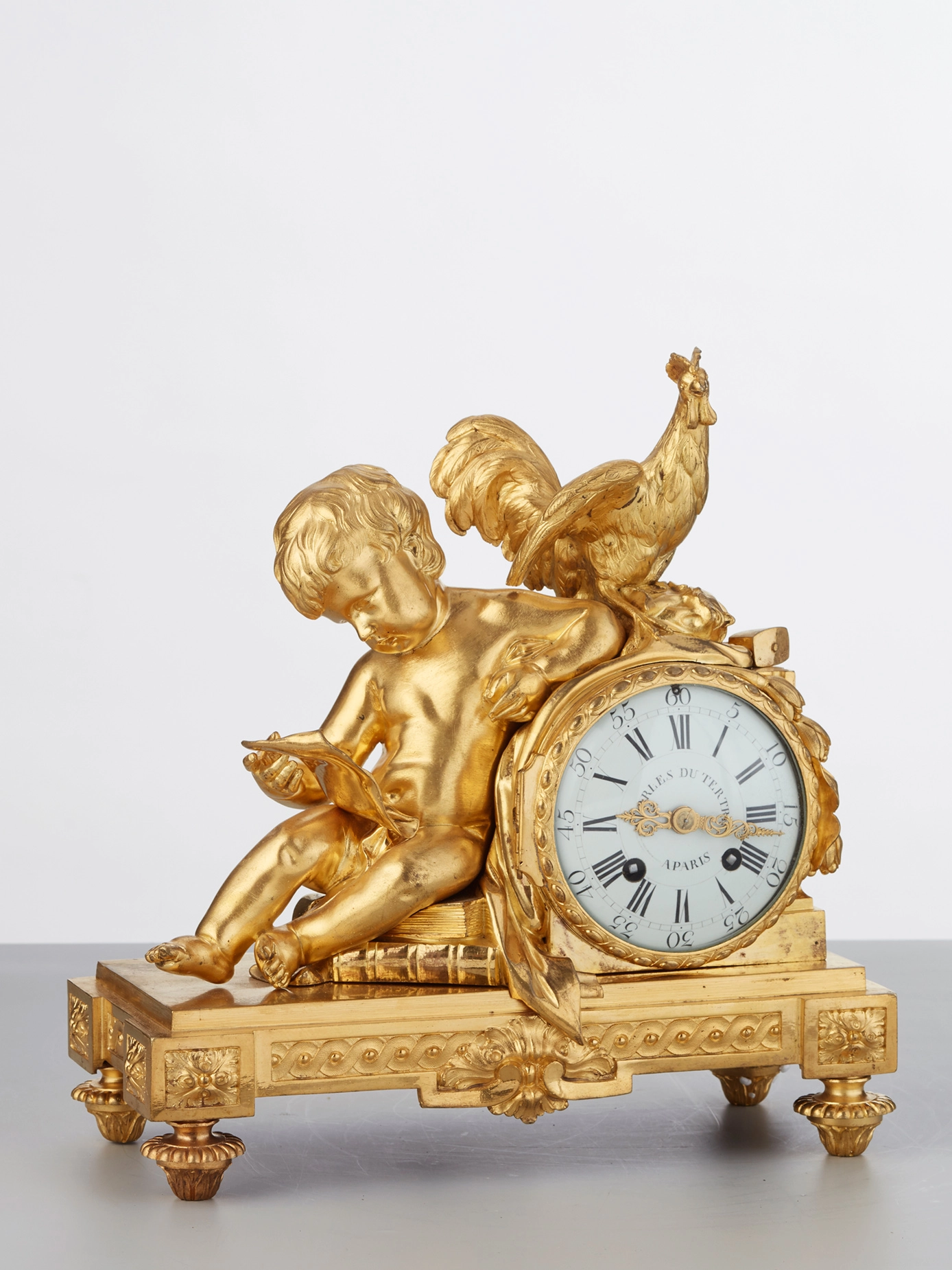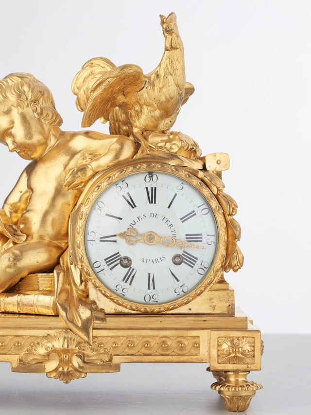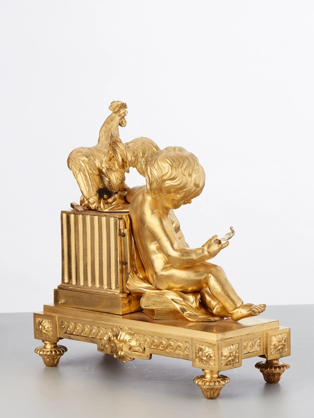 An attractive French Louis XVI ormolu sculptural mantel clock J B Balthazar, circa 1770