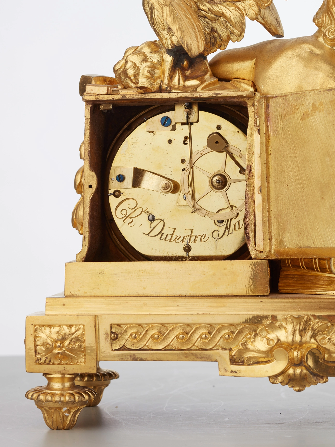 A good French Charles X ormolu sculptural mantel clock, circa 1825.