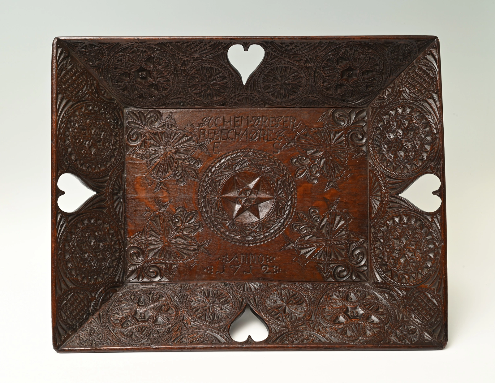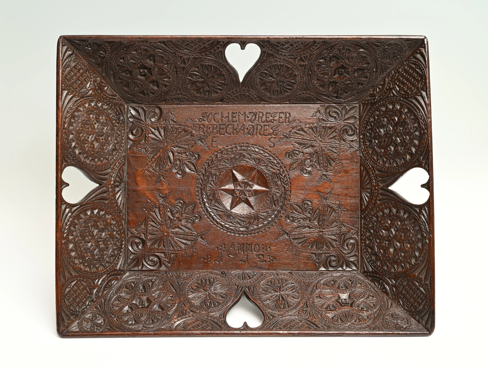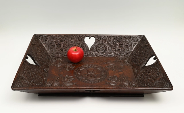 This large-format diaper basket is entirely decorated with Frisian carving.