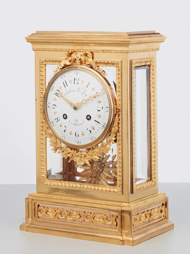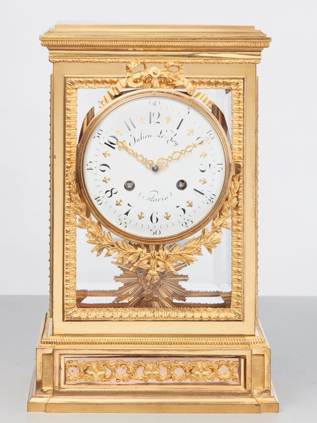 An impressive French Louis XVI-style gilt bronze and marble mantel clock