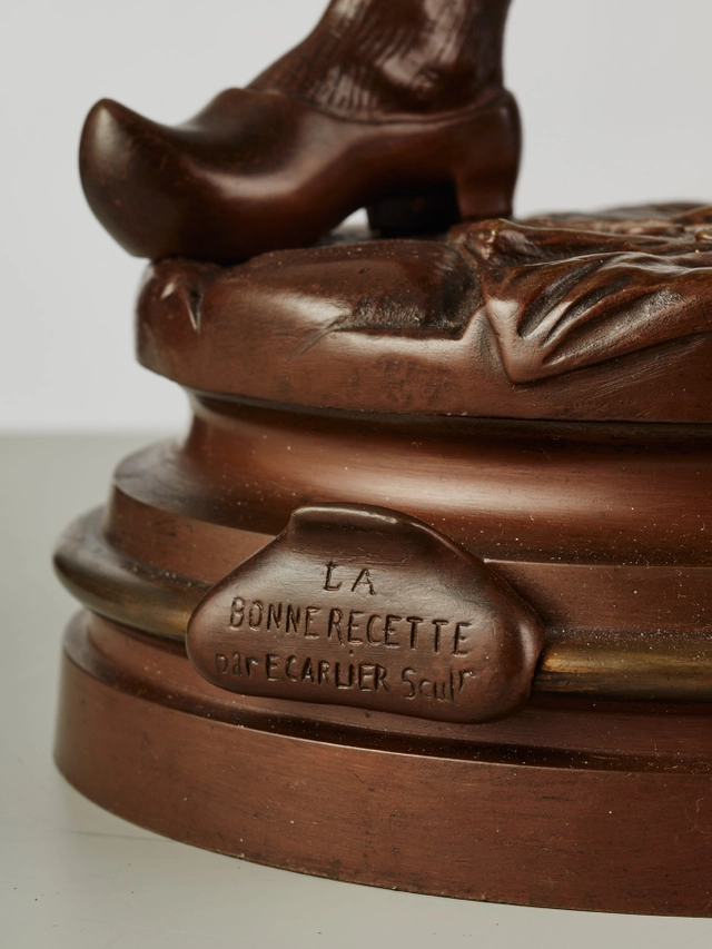 A small French Empire patinated and ormolu sculptural mantel clock Grandperrin à Perrin circa 1805.