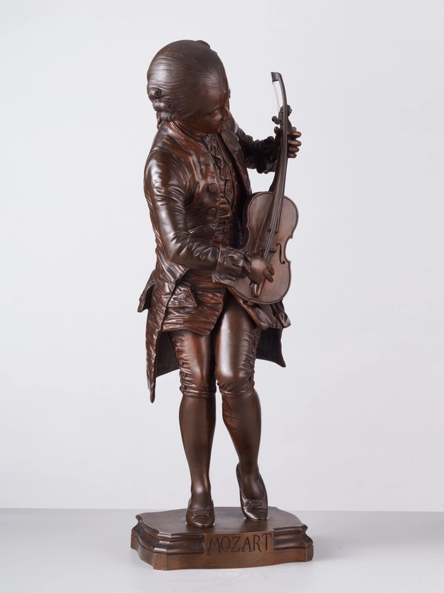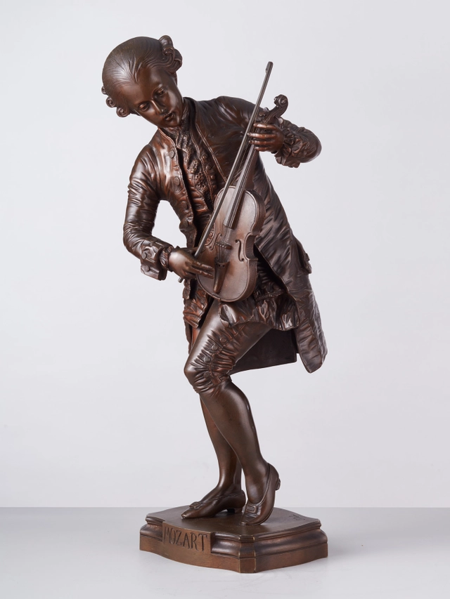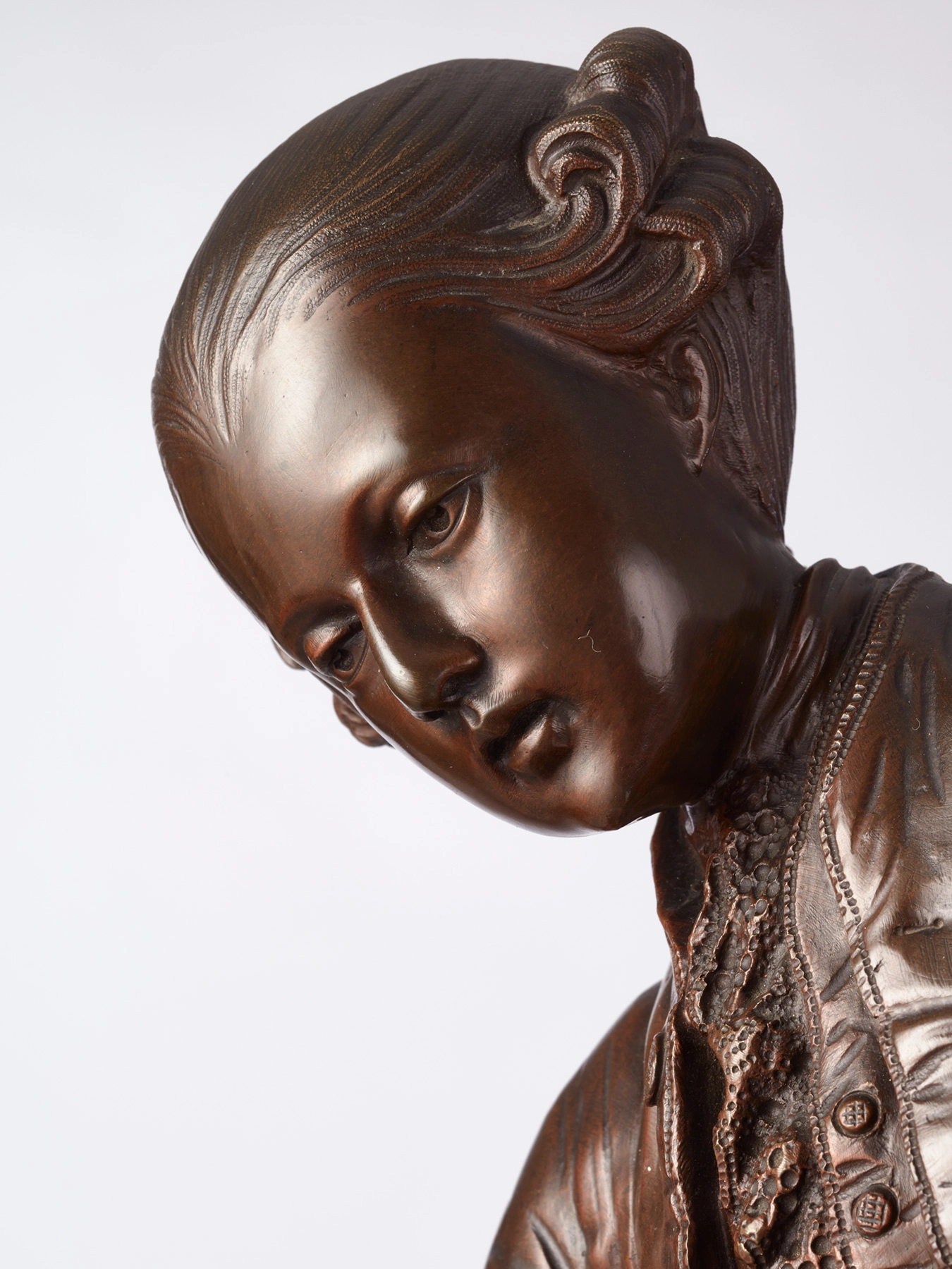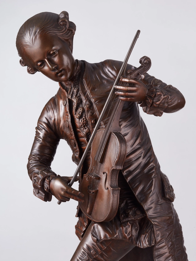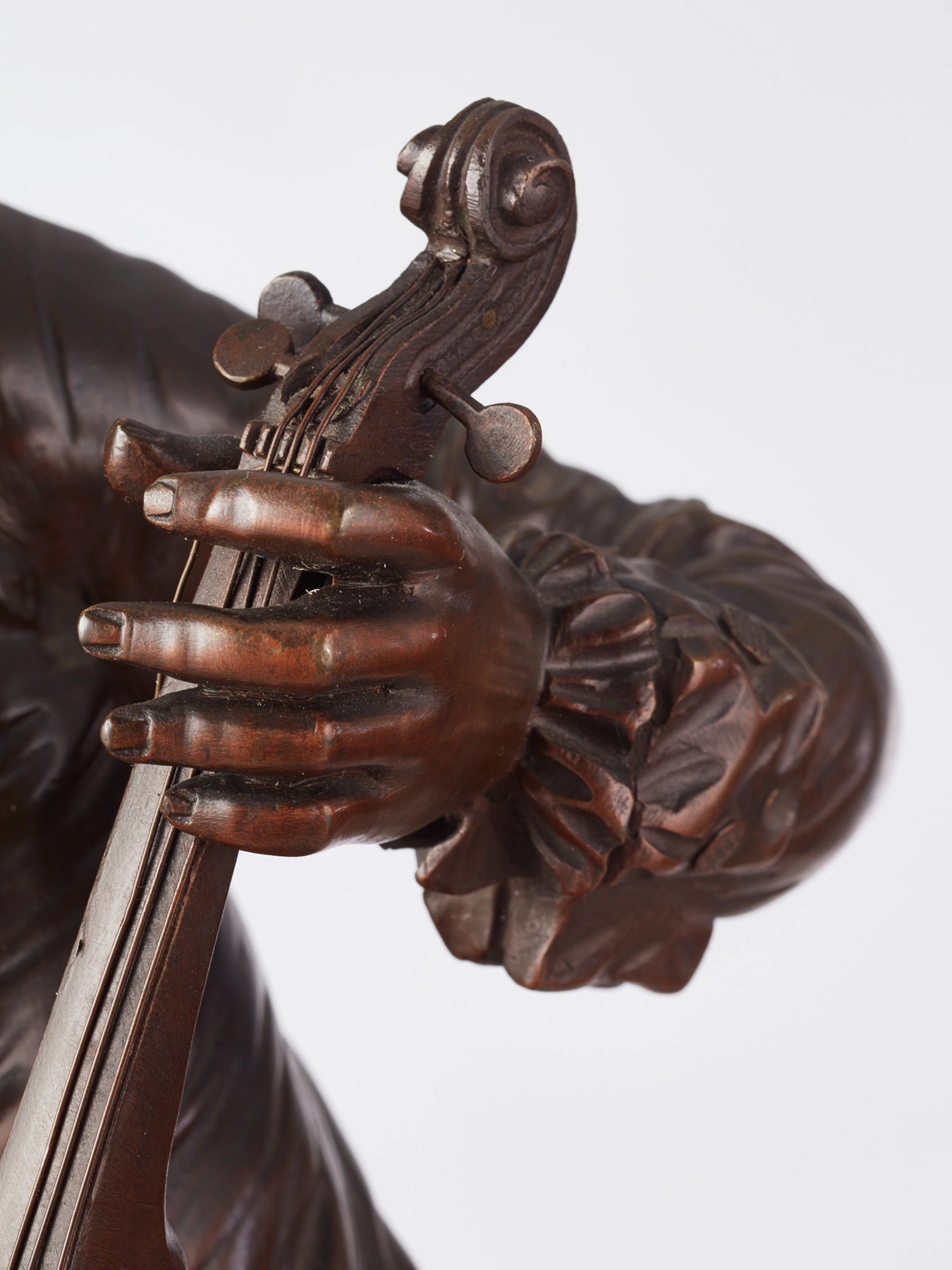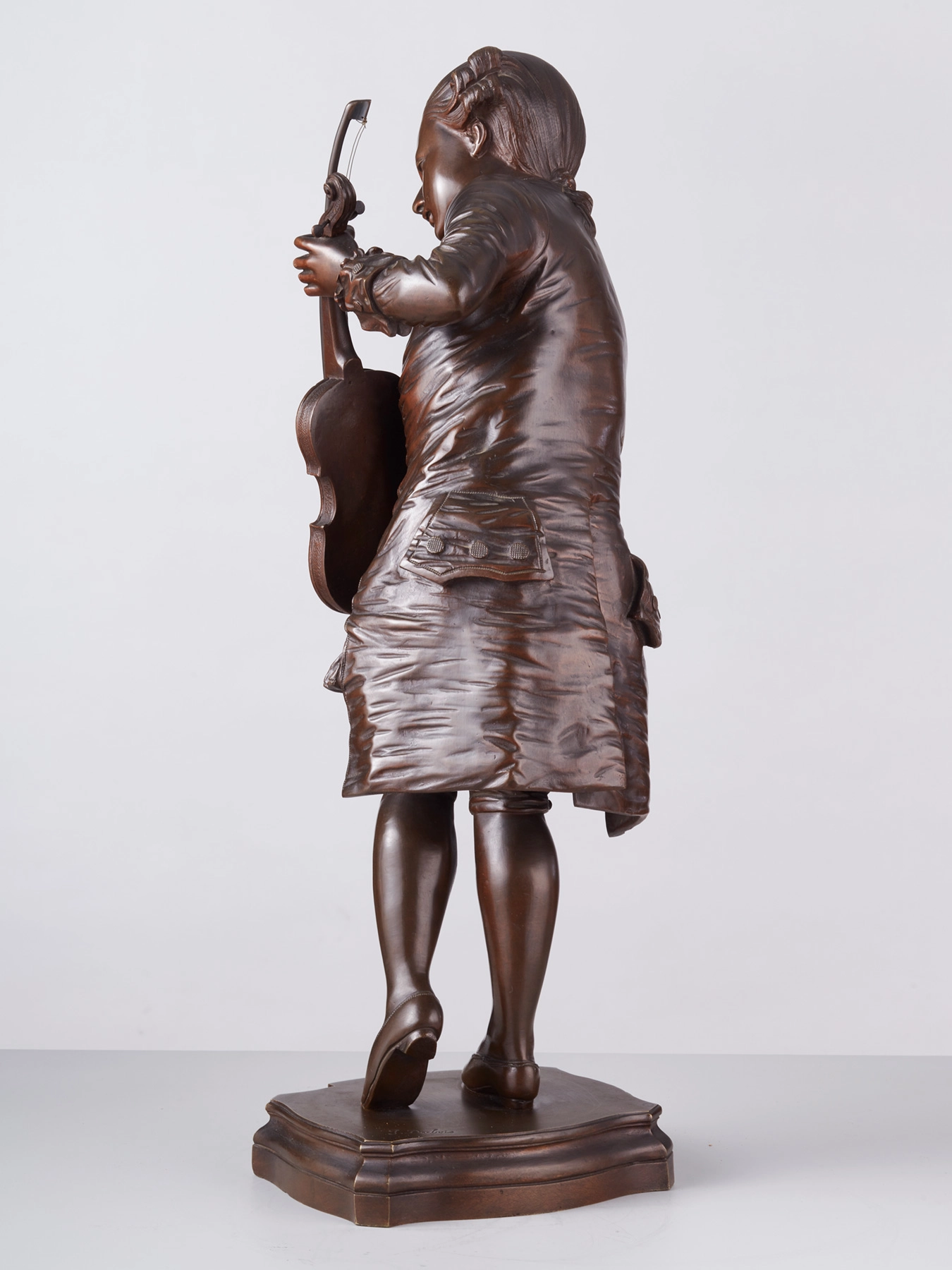 A French Bronze Sculpture of boy playing violin, signed E Carlier, circa 1880