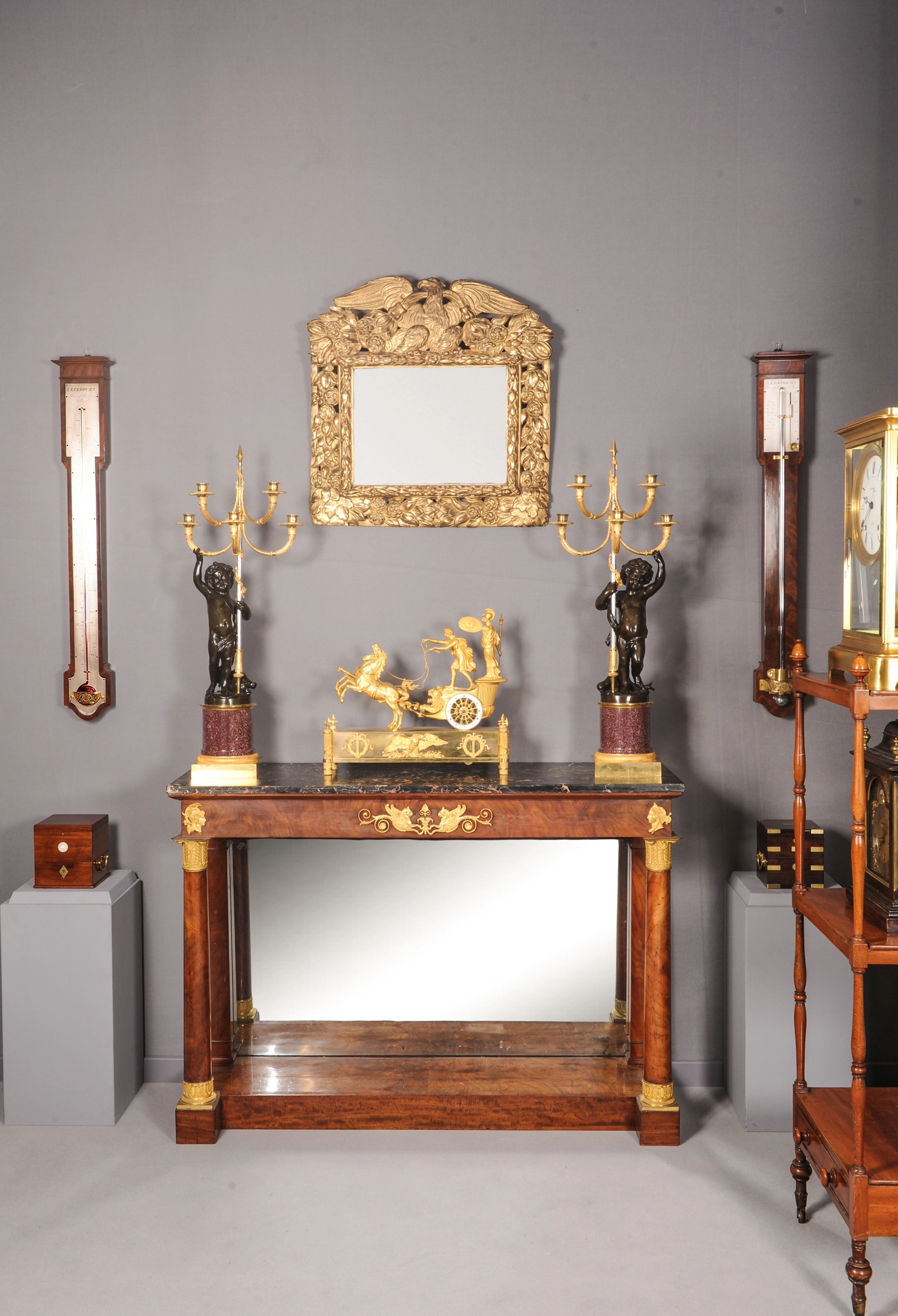 A good French Charles X ormolu sculptural mantel clock, circa 1825.
