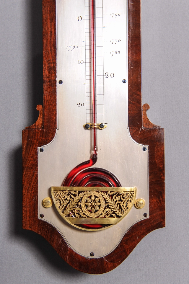 A good Dutch Louis XVI mahogany inlaid 'bakbarometer', by Zaveri Ori, circa 1800