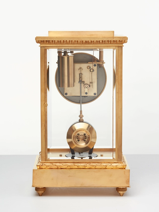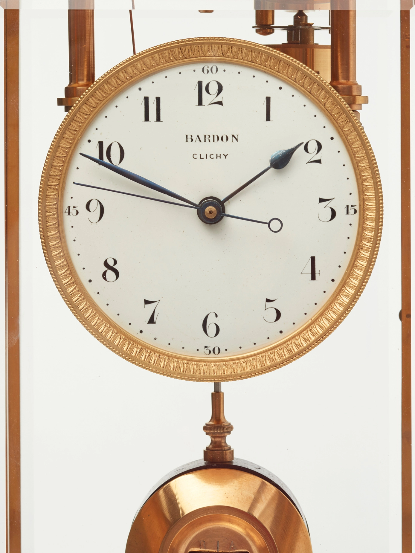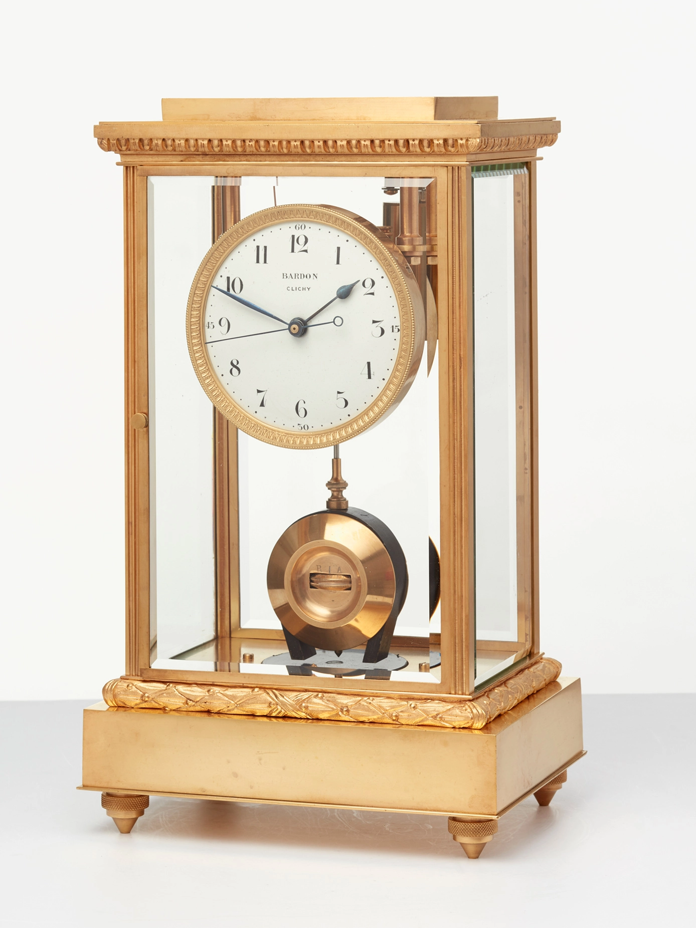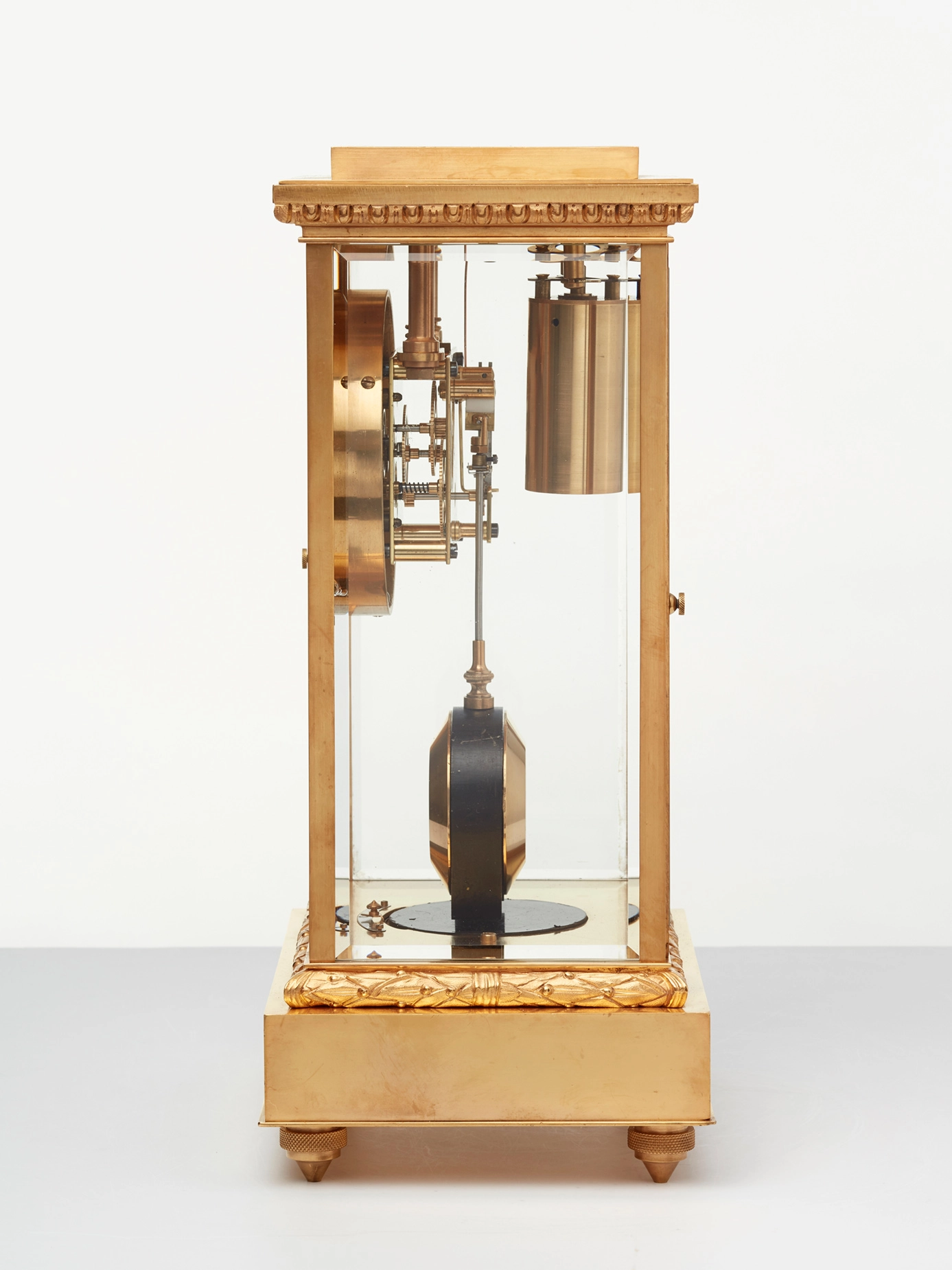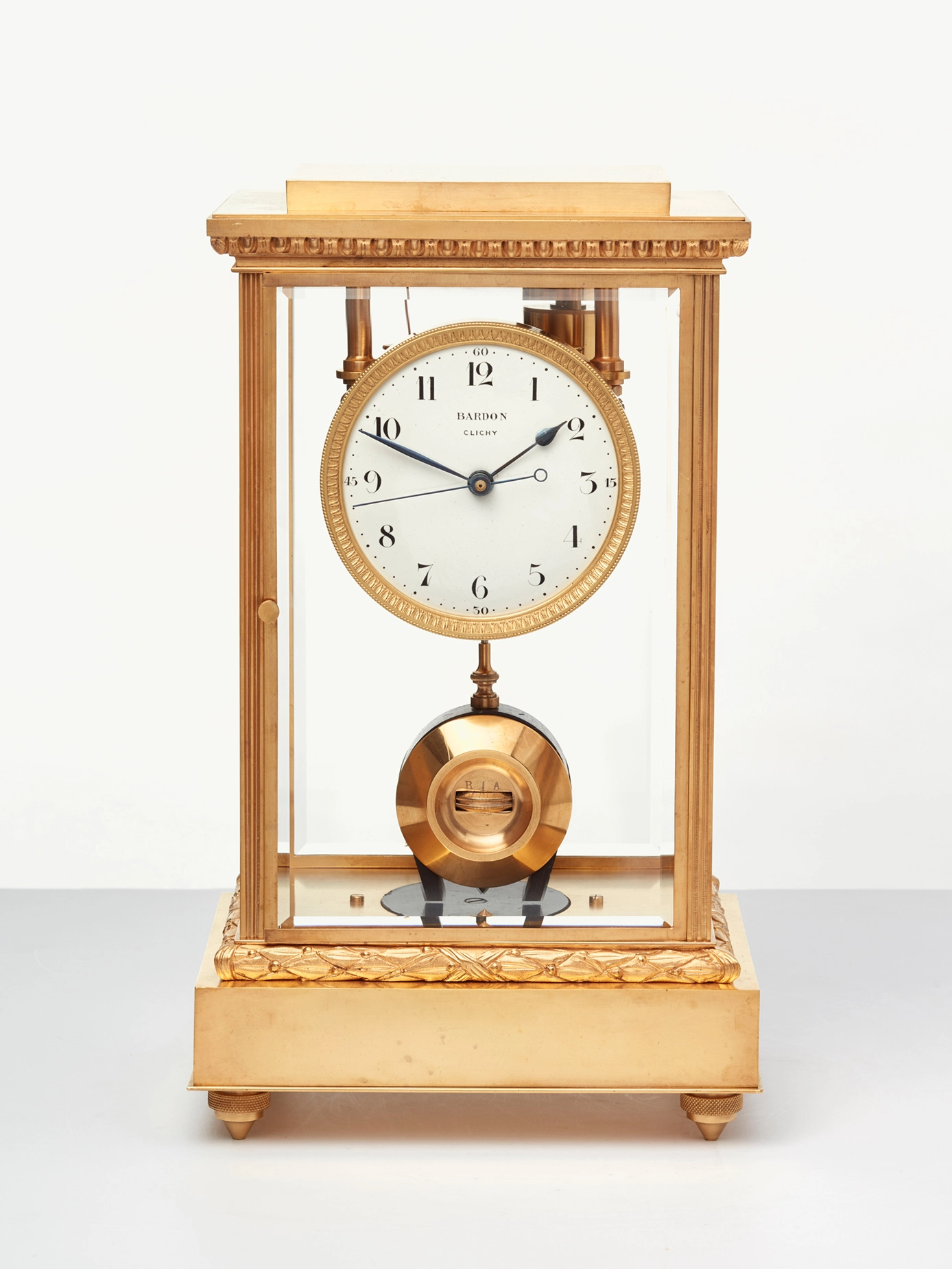 A French ‘Empire’ maple and gilt 4-column clock, circa 1830
