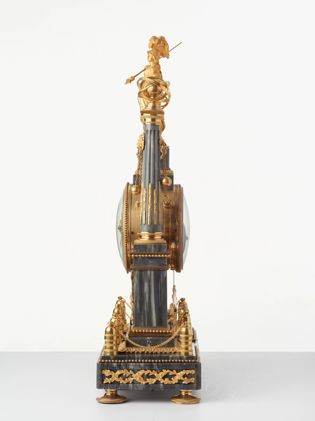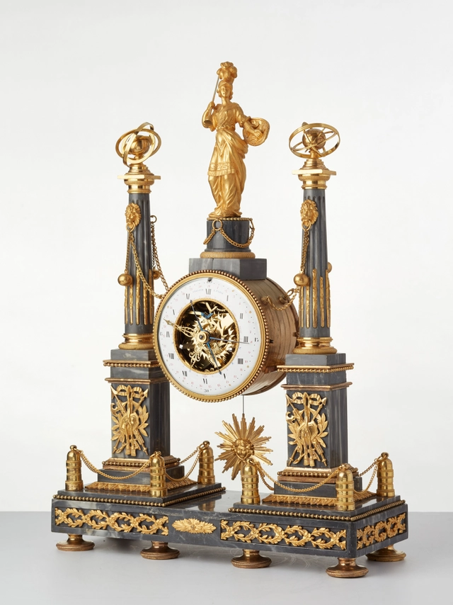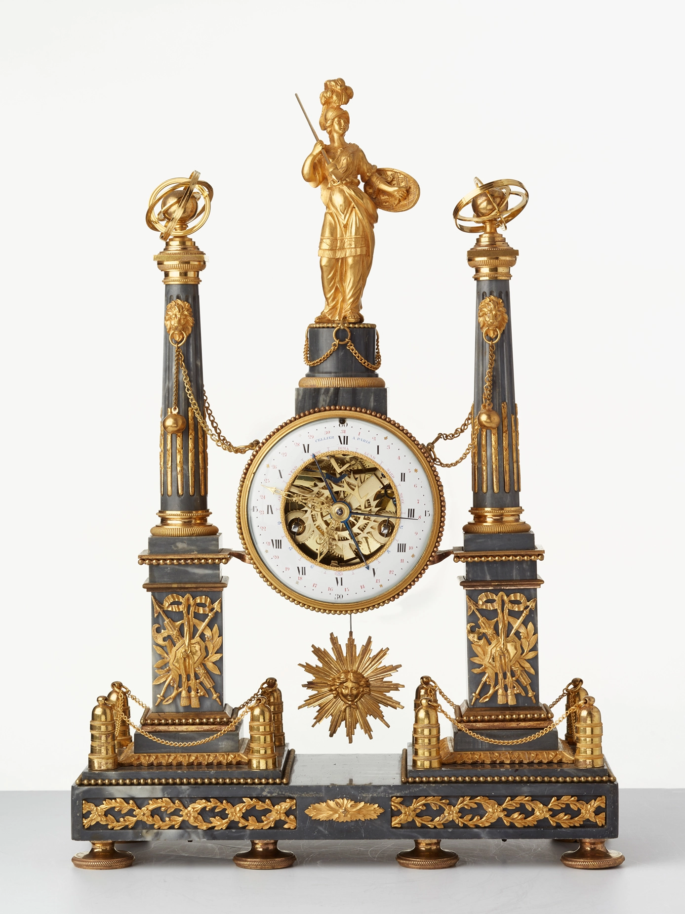 An attractive French Louis XVI ormolu sculptural mantel clock J B Balthazar, circa 1770