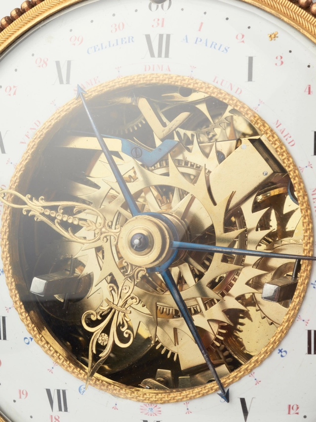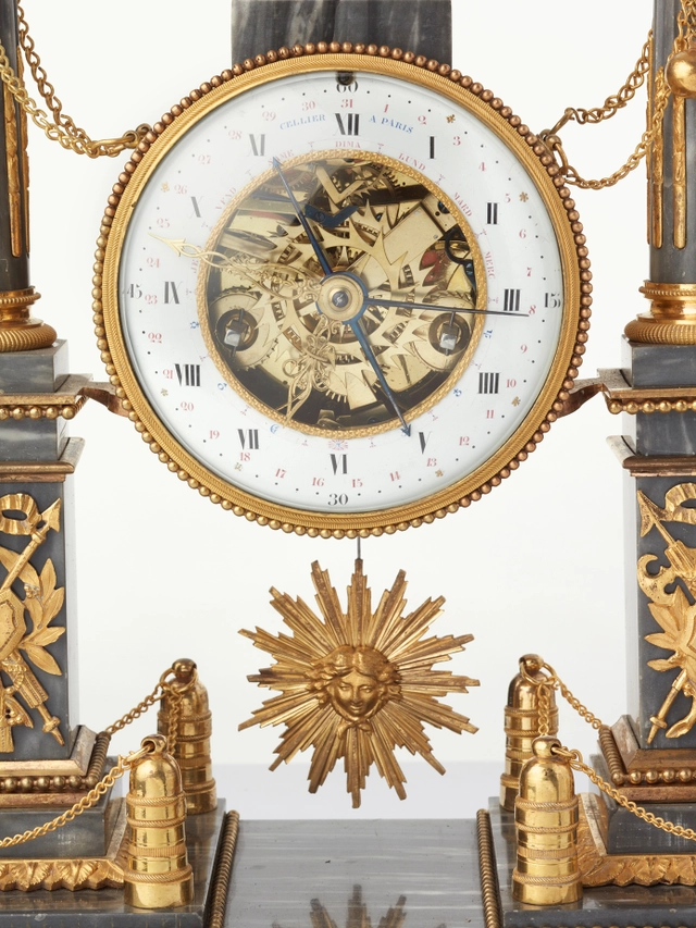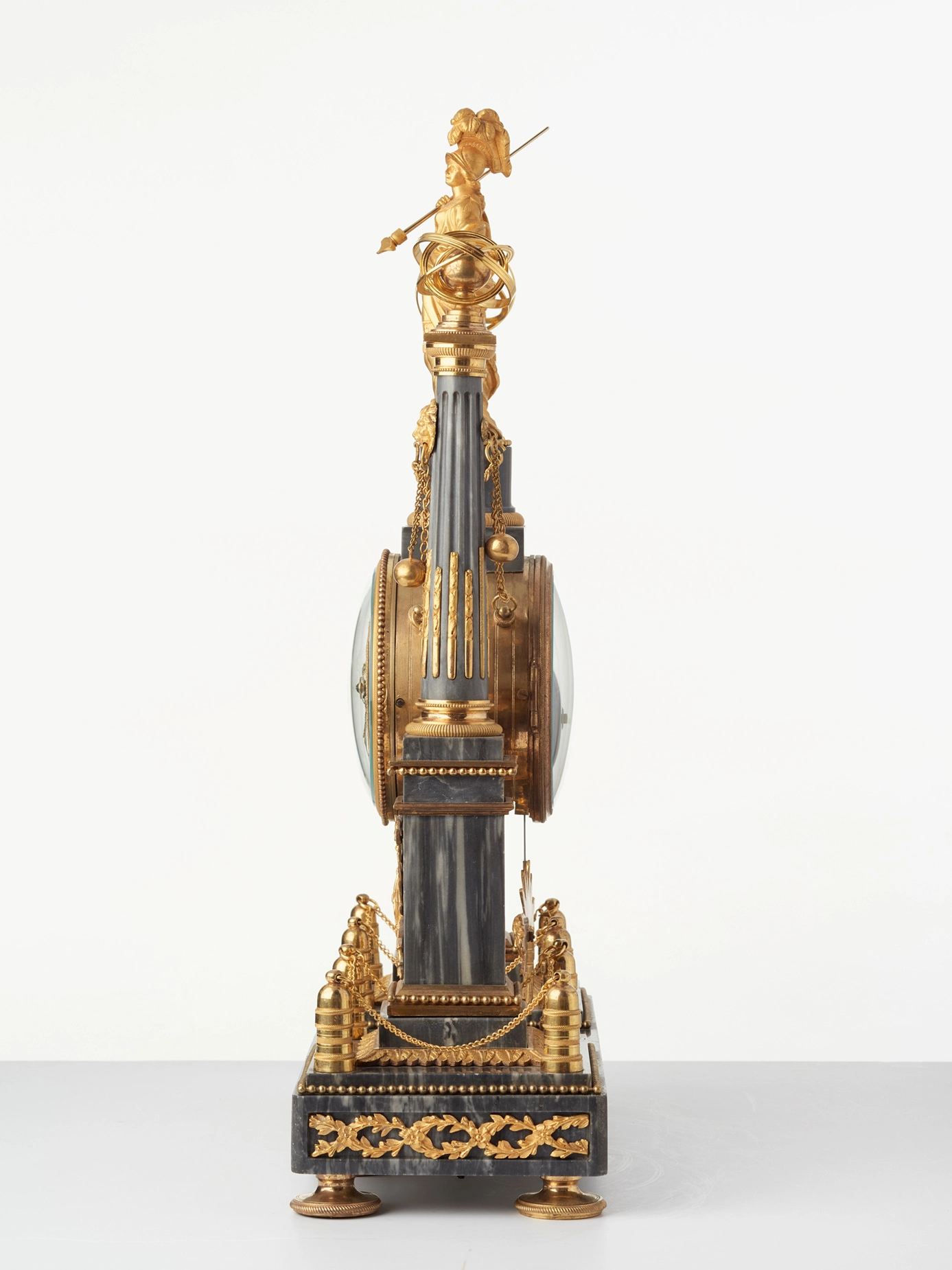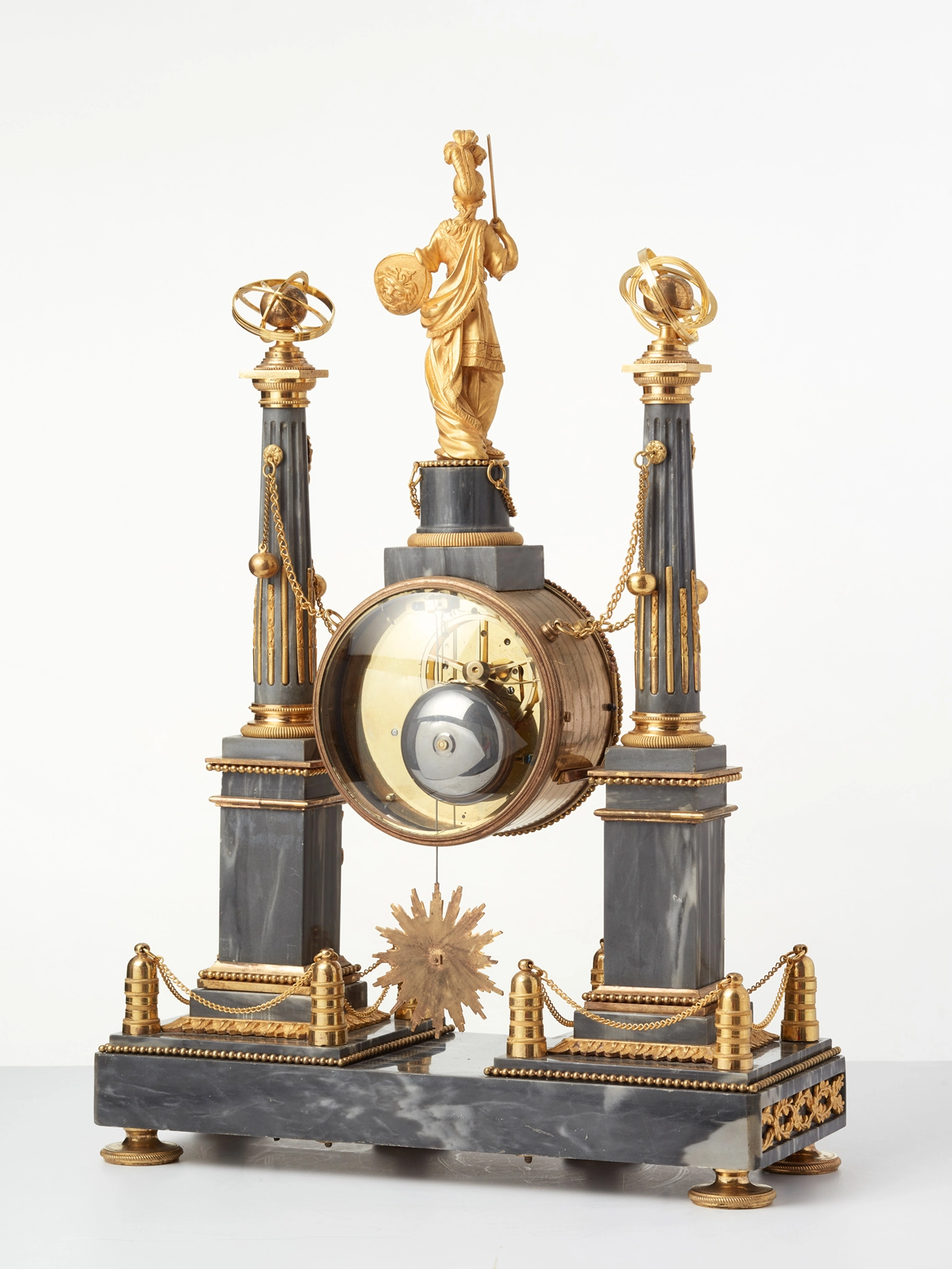 An attractive French Louis XVI ormolu and marble 'cercles tournants' mantel clock, by Barancourt, circa 1780