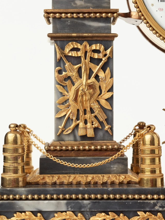 A French Louis XVI ormolu mounted marble mantel clock, circa 1780