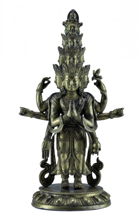 A GILT-BRONZE FIGURE OF AN ELEVEN-HEADED AVALOKITESVARA
