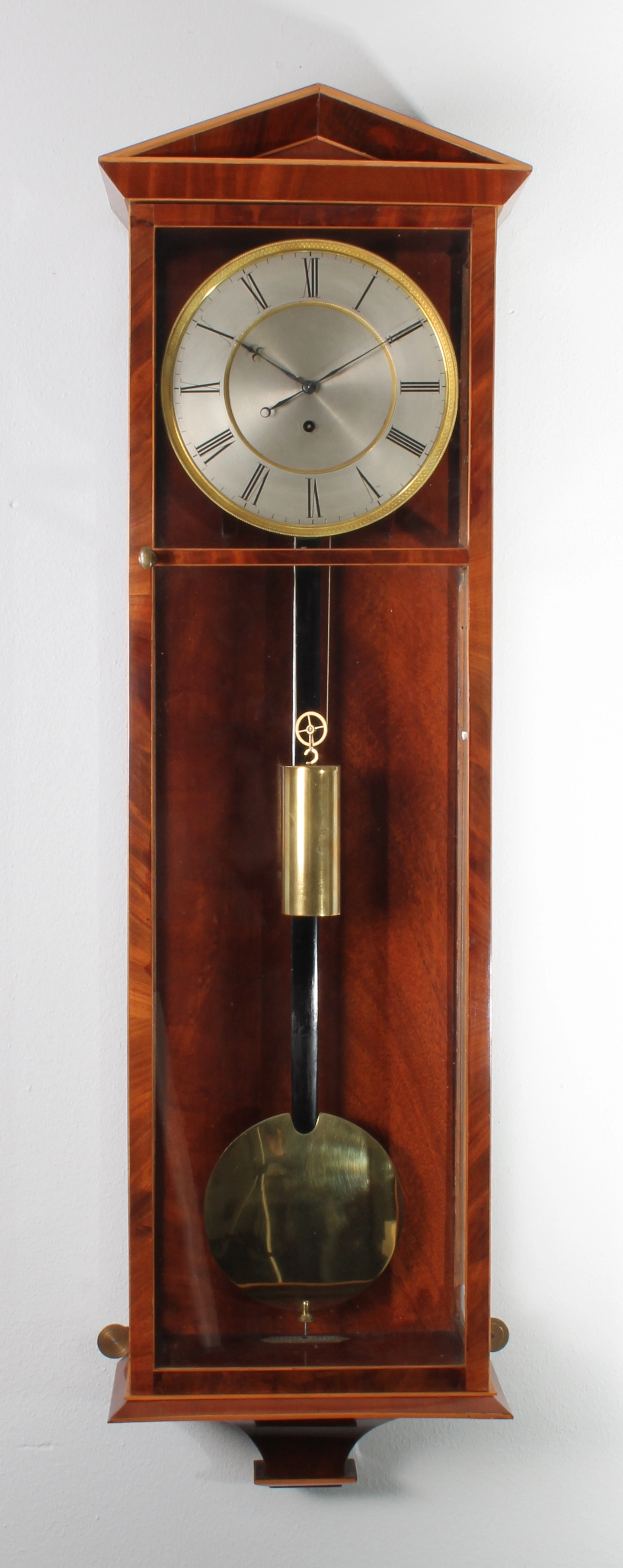 An attractive French mahogany wall regulator of month duration, attr. to Rodanet circa 1840.