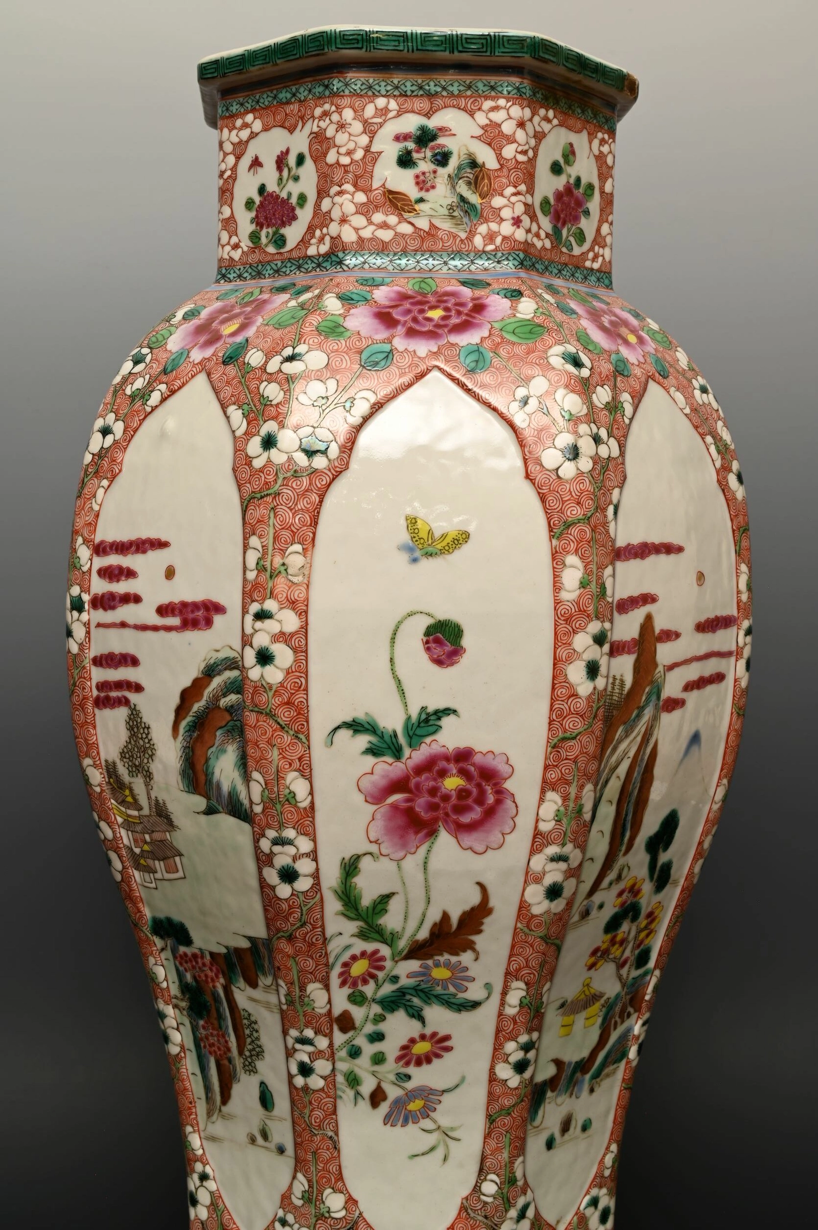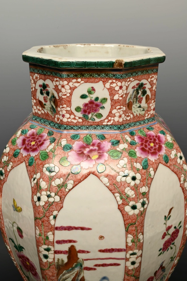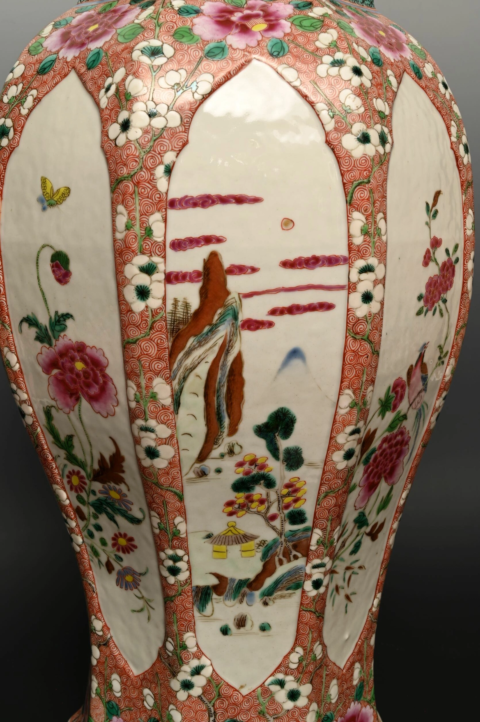 A large Chinese porcelain vase with floral Famille Rose design,