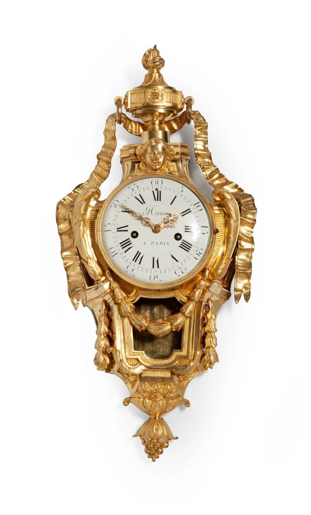 very fine Lou A very fine gilt bronze cartel clock, d’époque Louis XVI , mascaron, by Gérard à Ste Menehould, France circa 1780.is XVI gilt bronze cartel clock, by Gérard à Ste Menehould, France circa 1780.