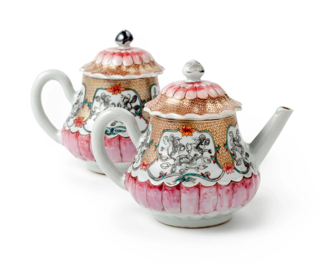 A pair of Dutch Delft doré round butter tubs with cover with a gilded lying cow