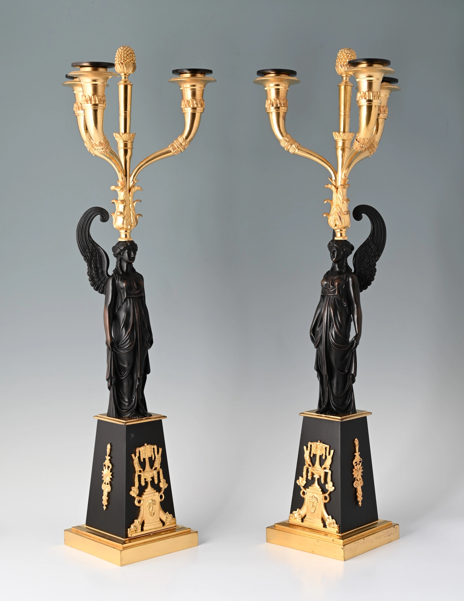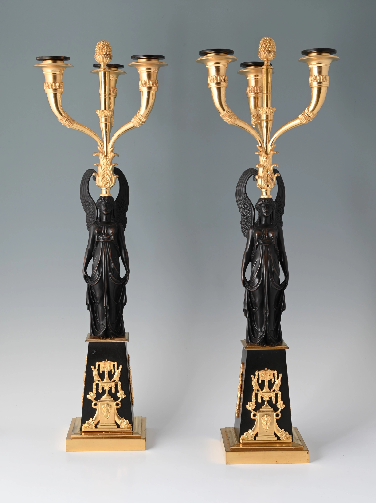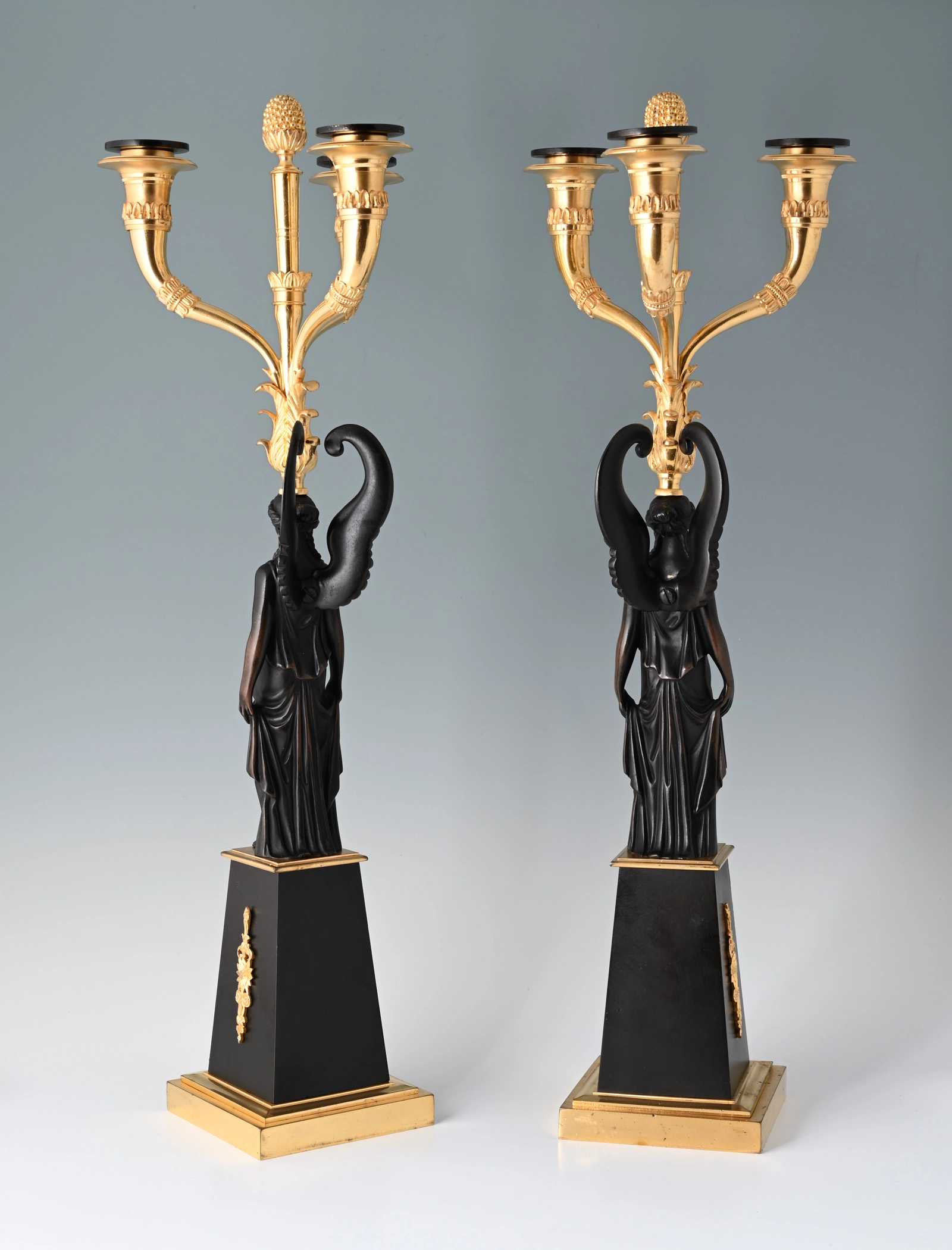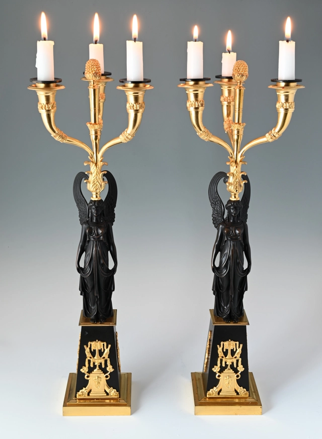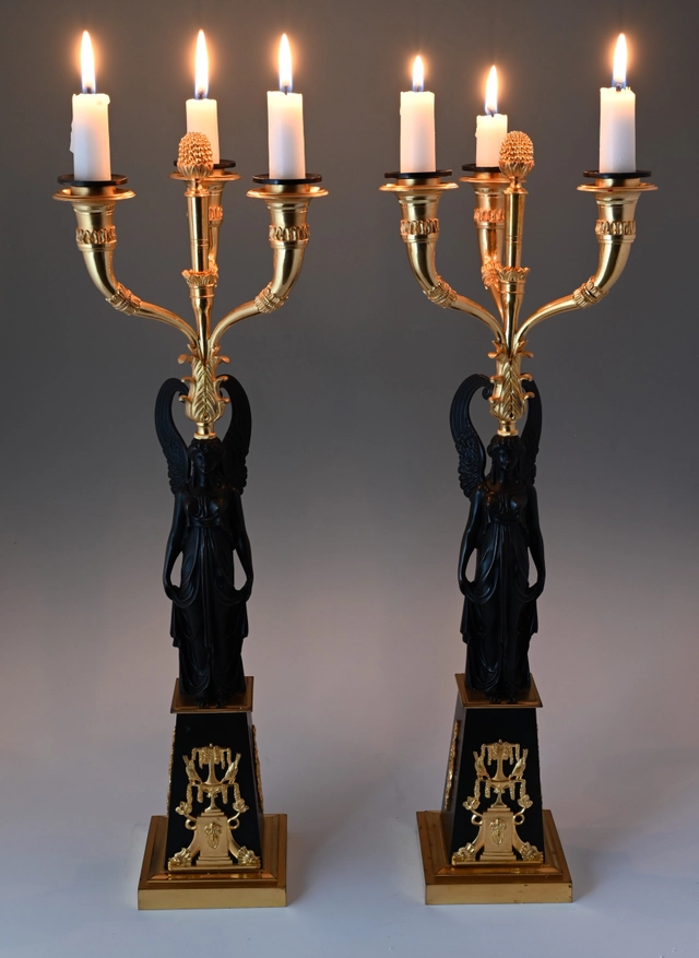A pair of bronze and ormolu Charles X coupes / candlesticks.