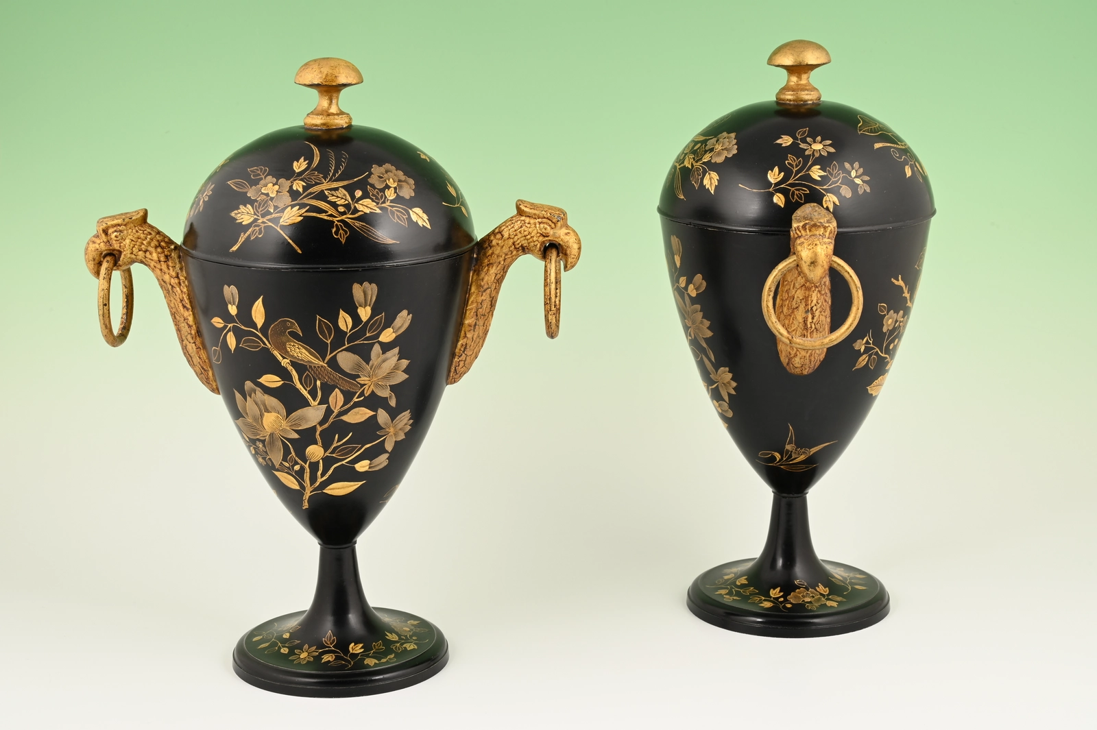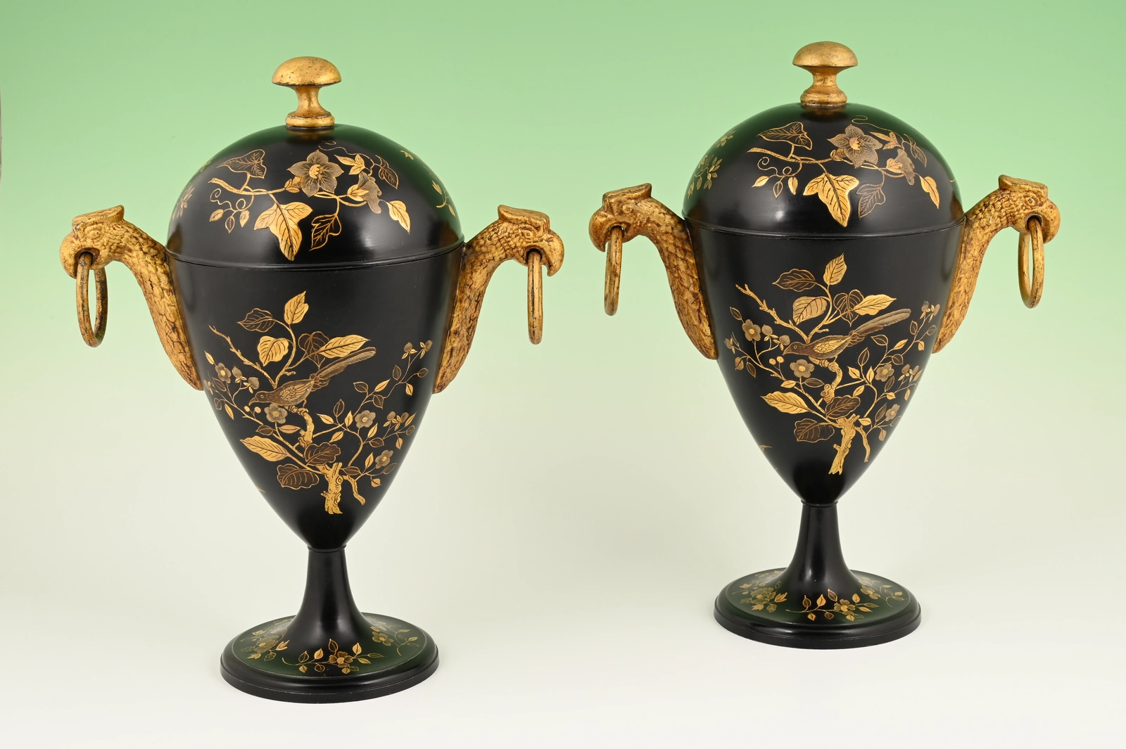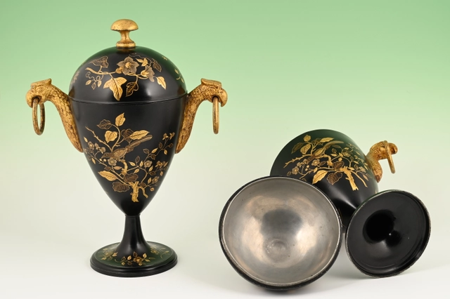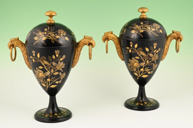 A pair of Dutch lacquered pewter chestnut vases.
