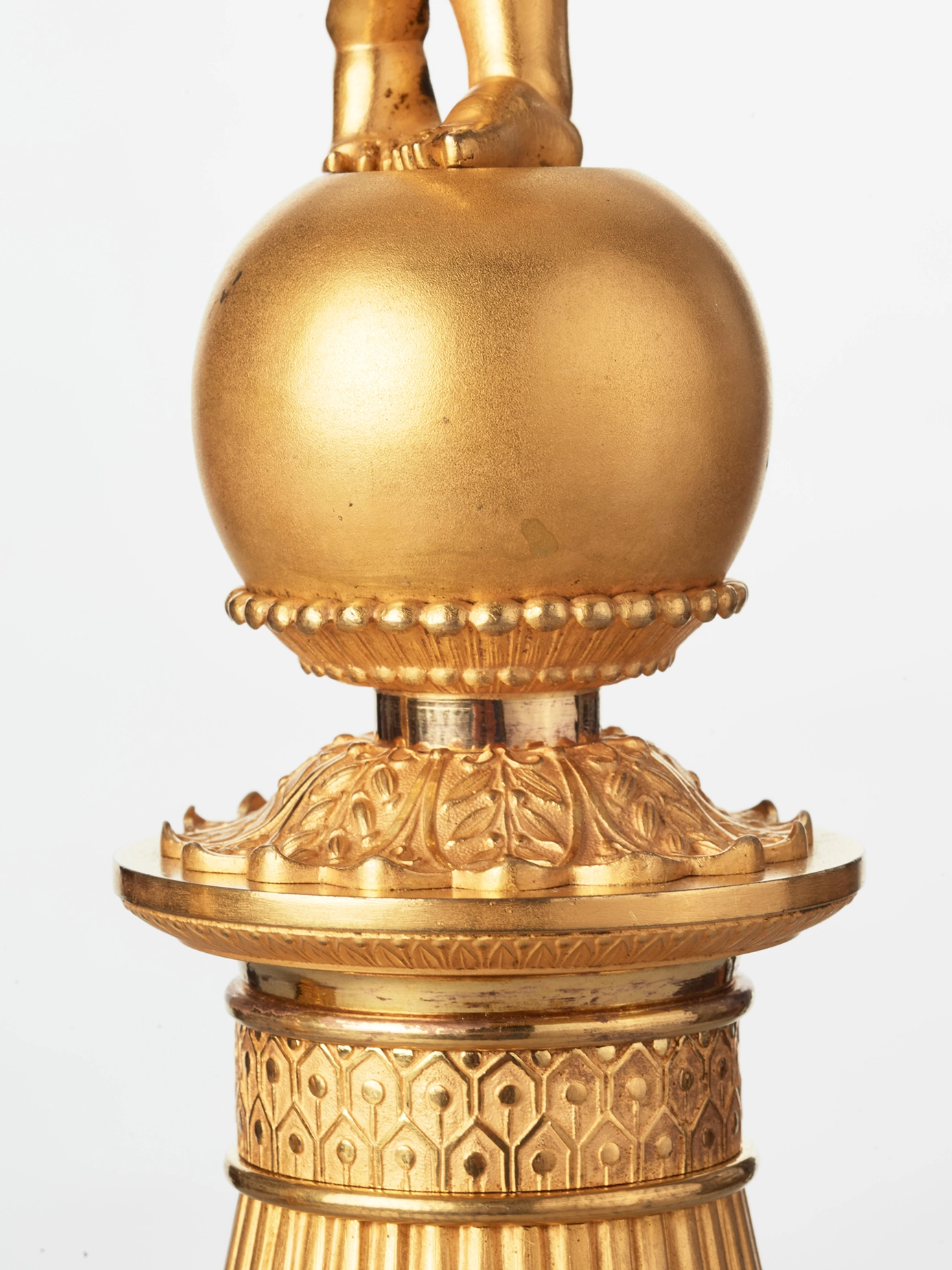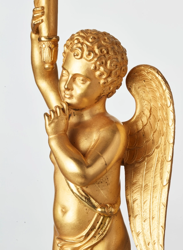A pair of French gilt candlesticks with patinated bronze angels, circa 1820
