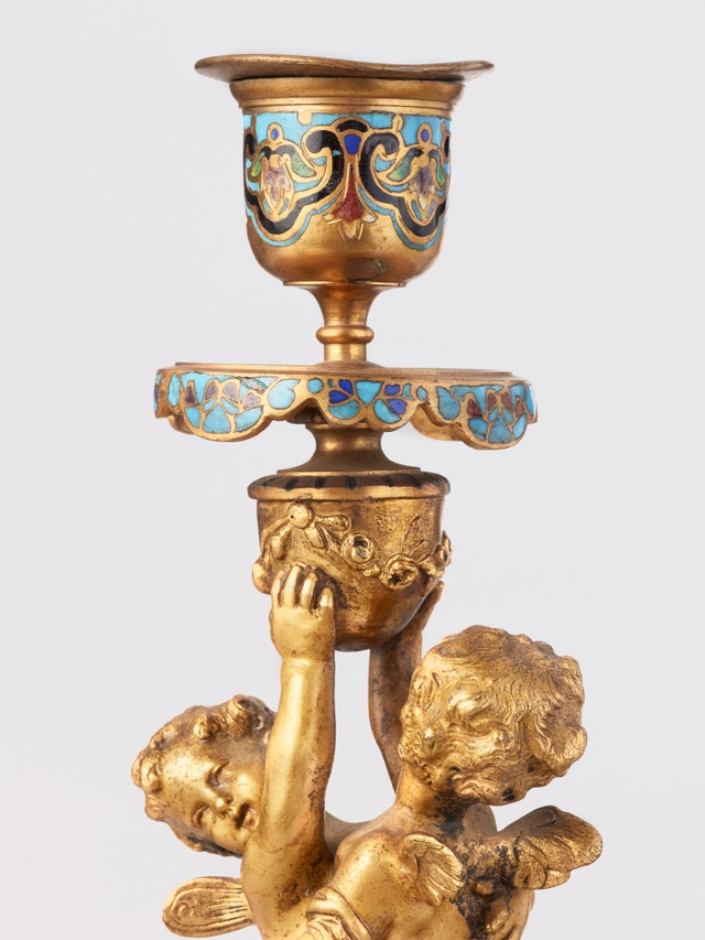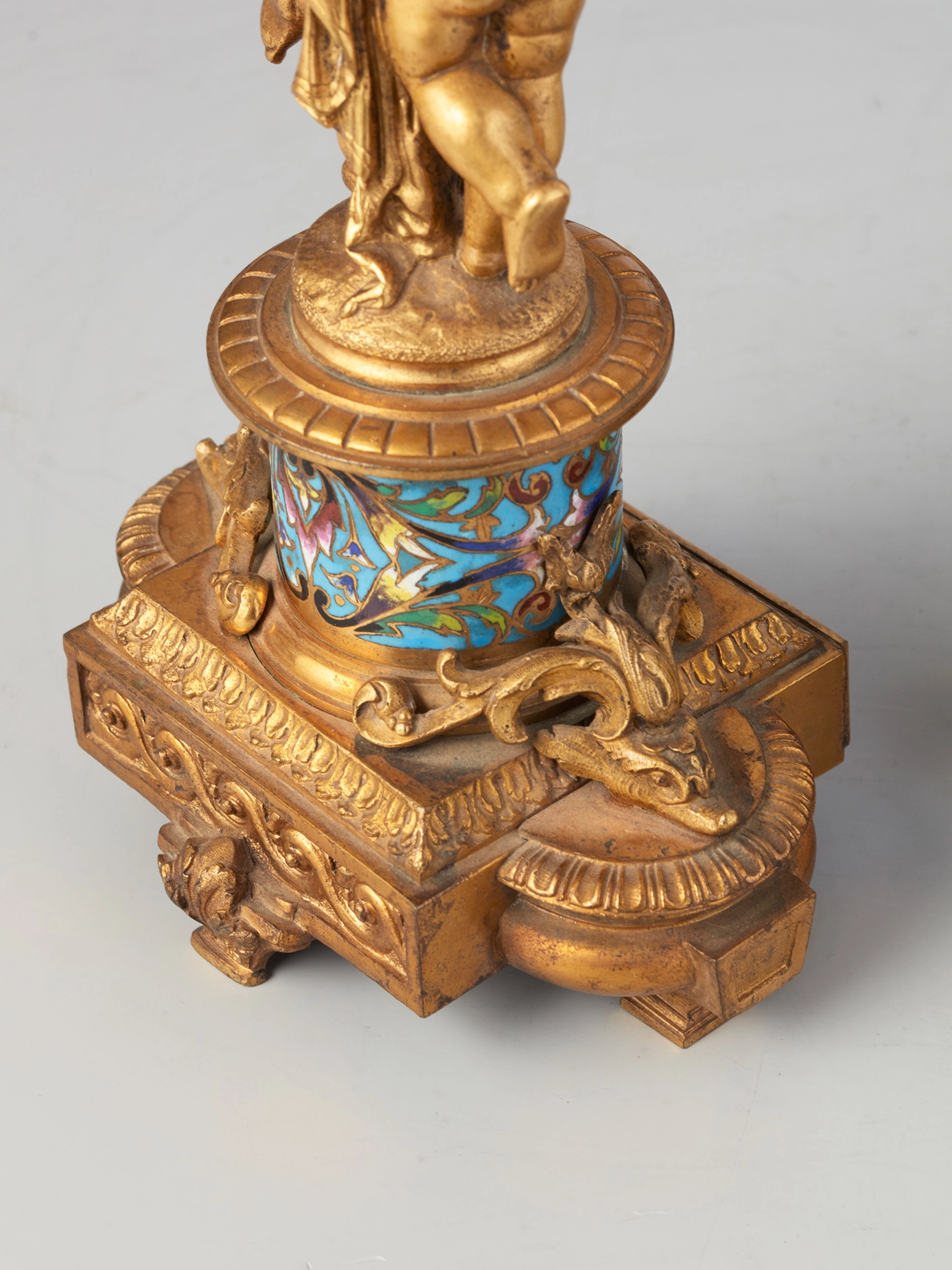 A pair of French gilt candlesticks with patinated bronze angels, circa 1820