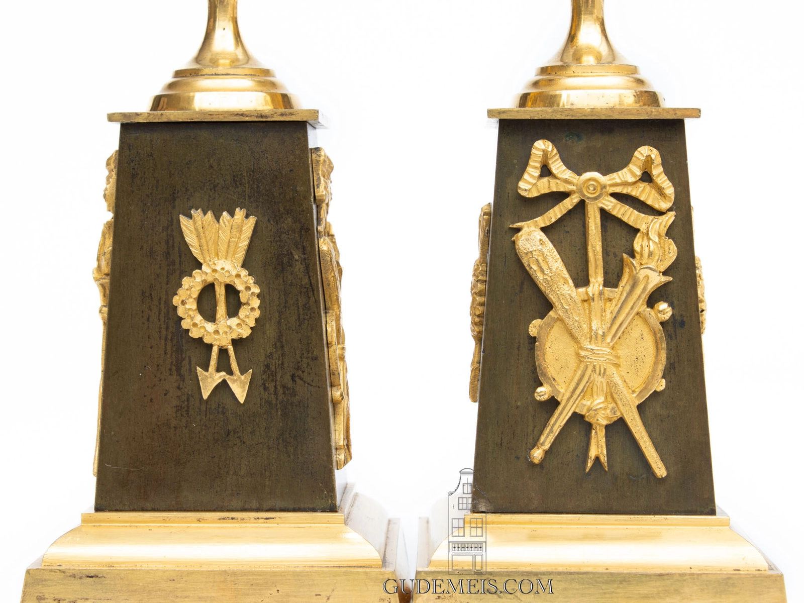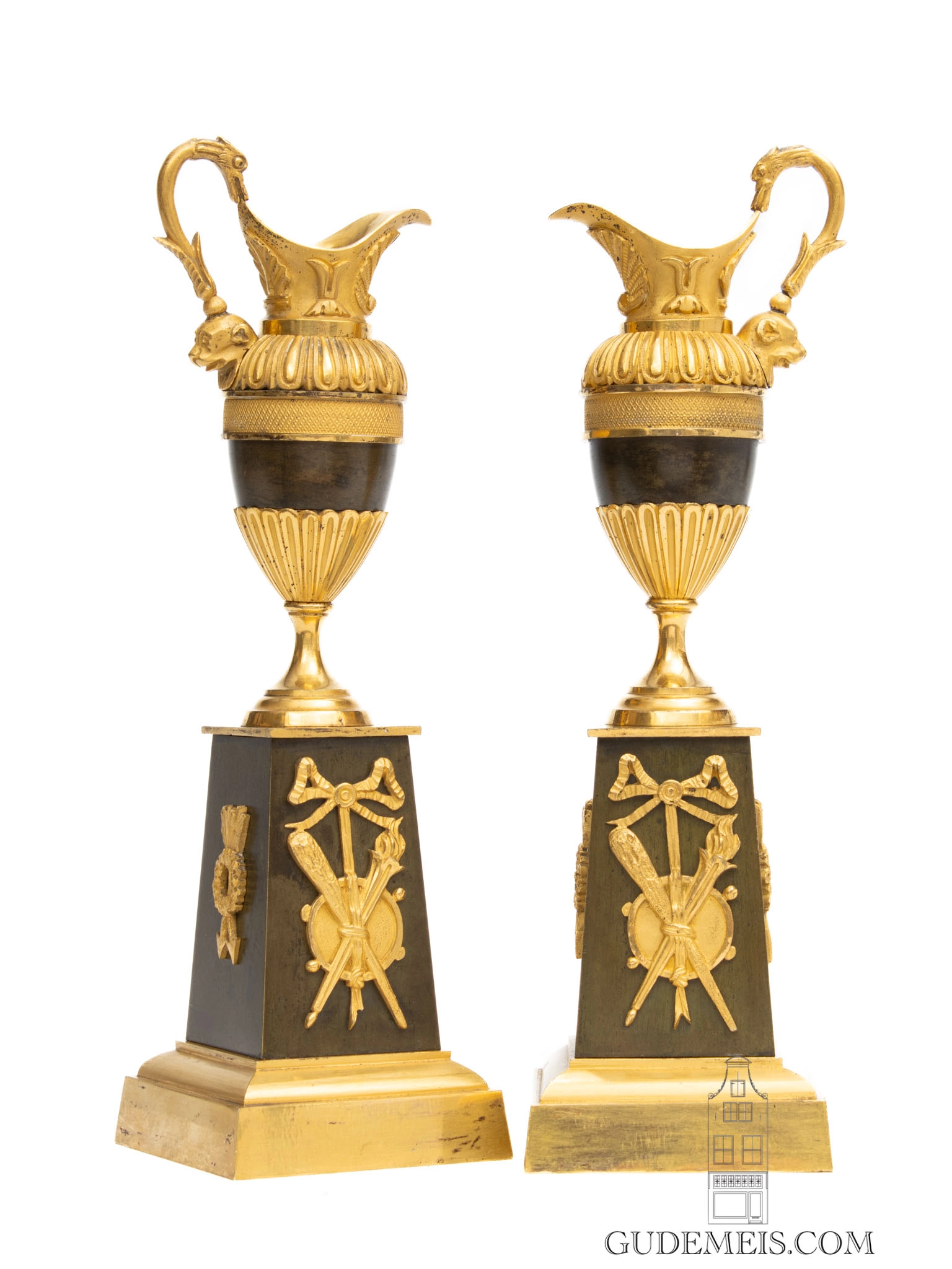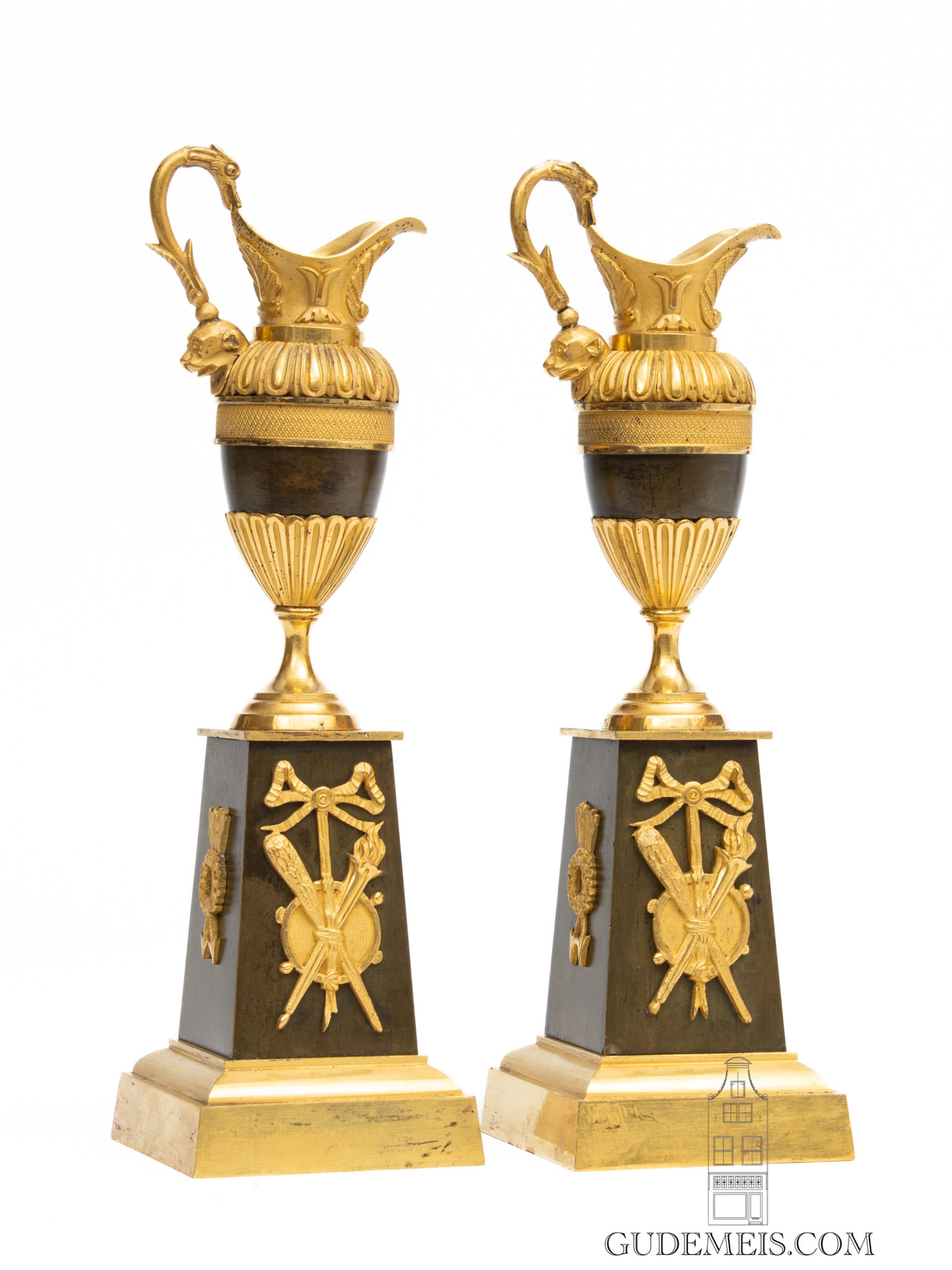 A pair of French Restoration gilt and bronze ewers/candle sticks, circa 1825