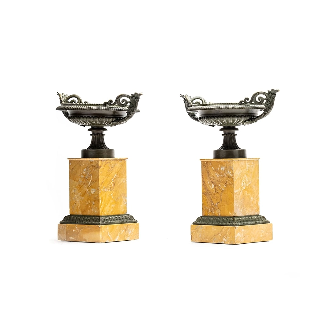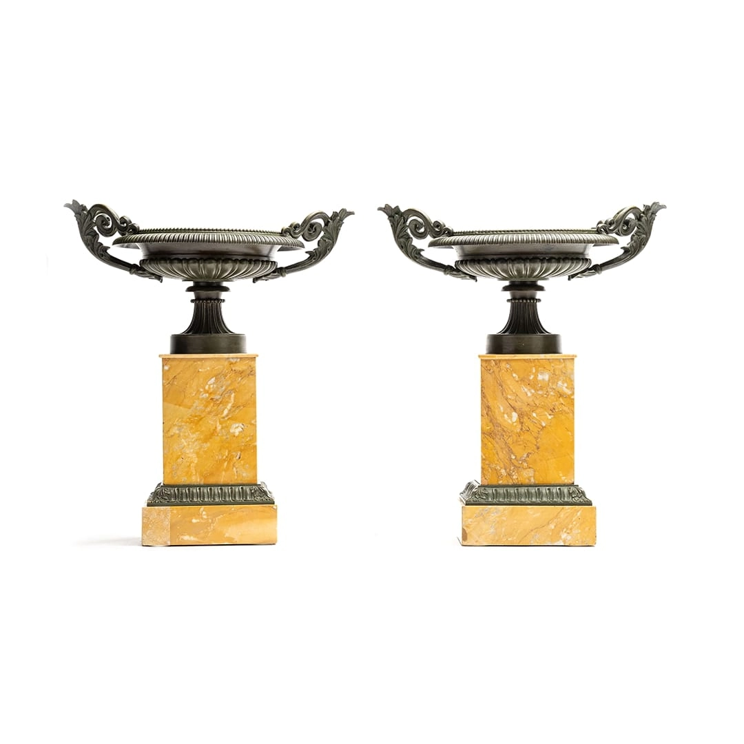 Fine pair of mounted, green porphyry marble urns, circa 1830 - Grand Tour