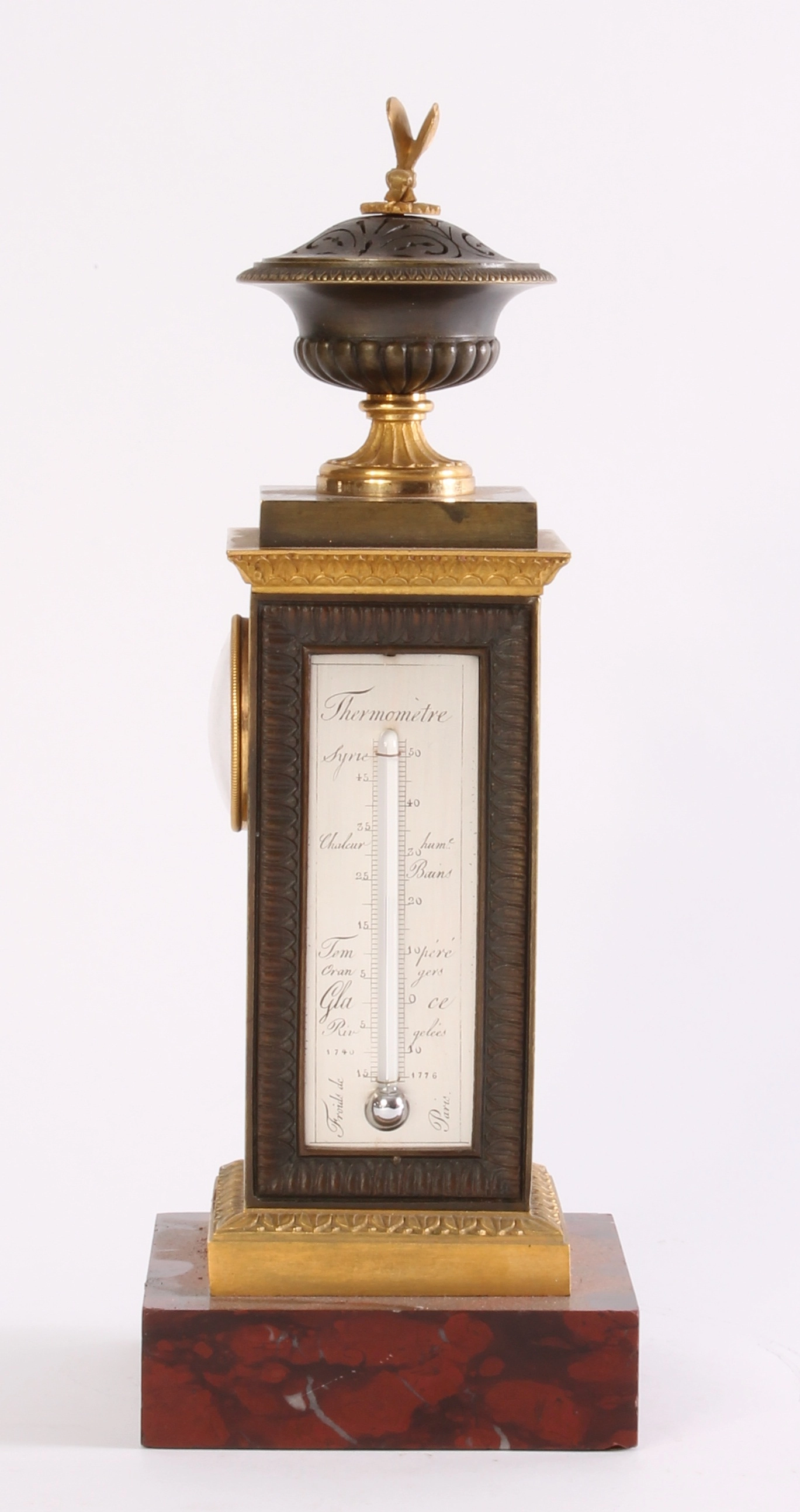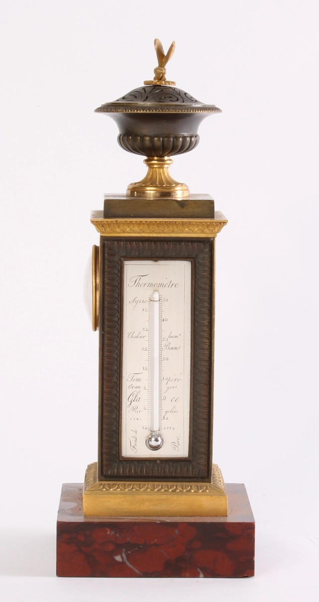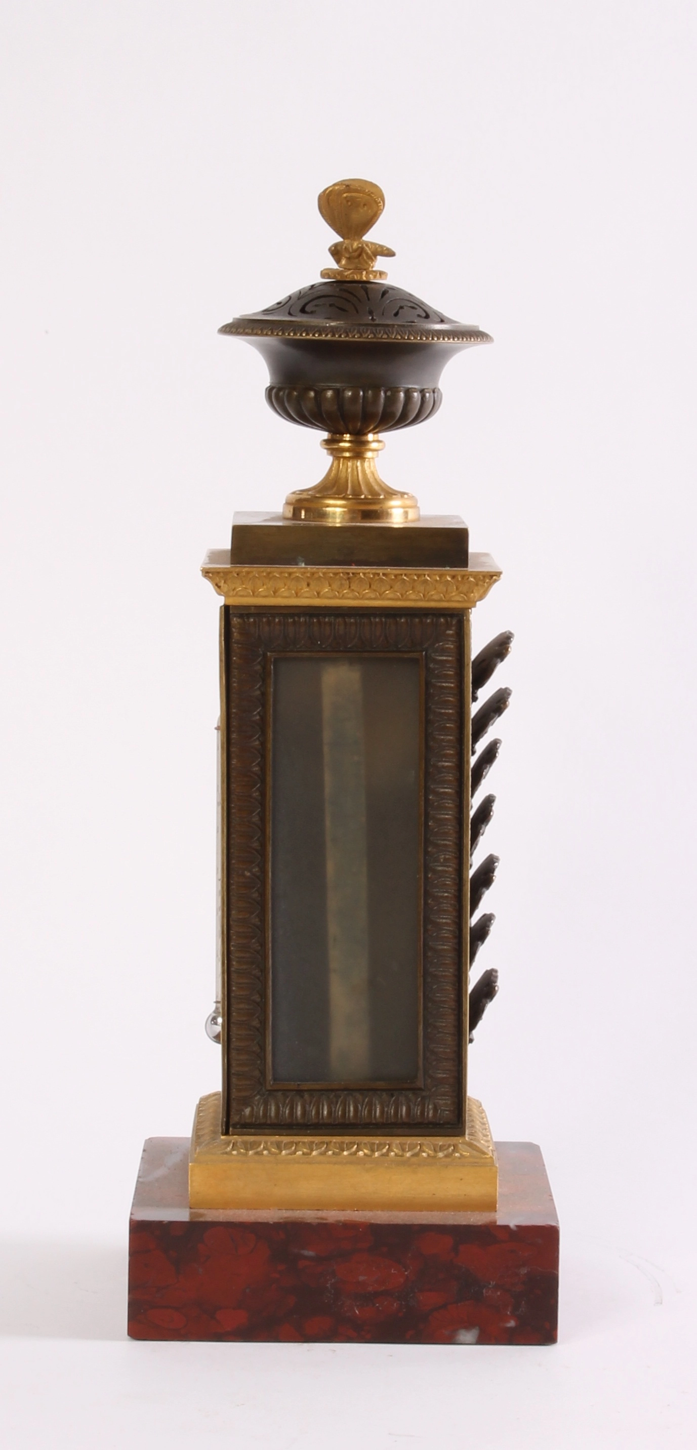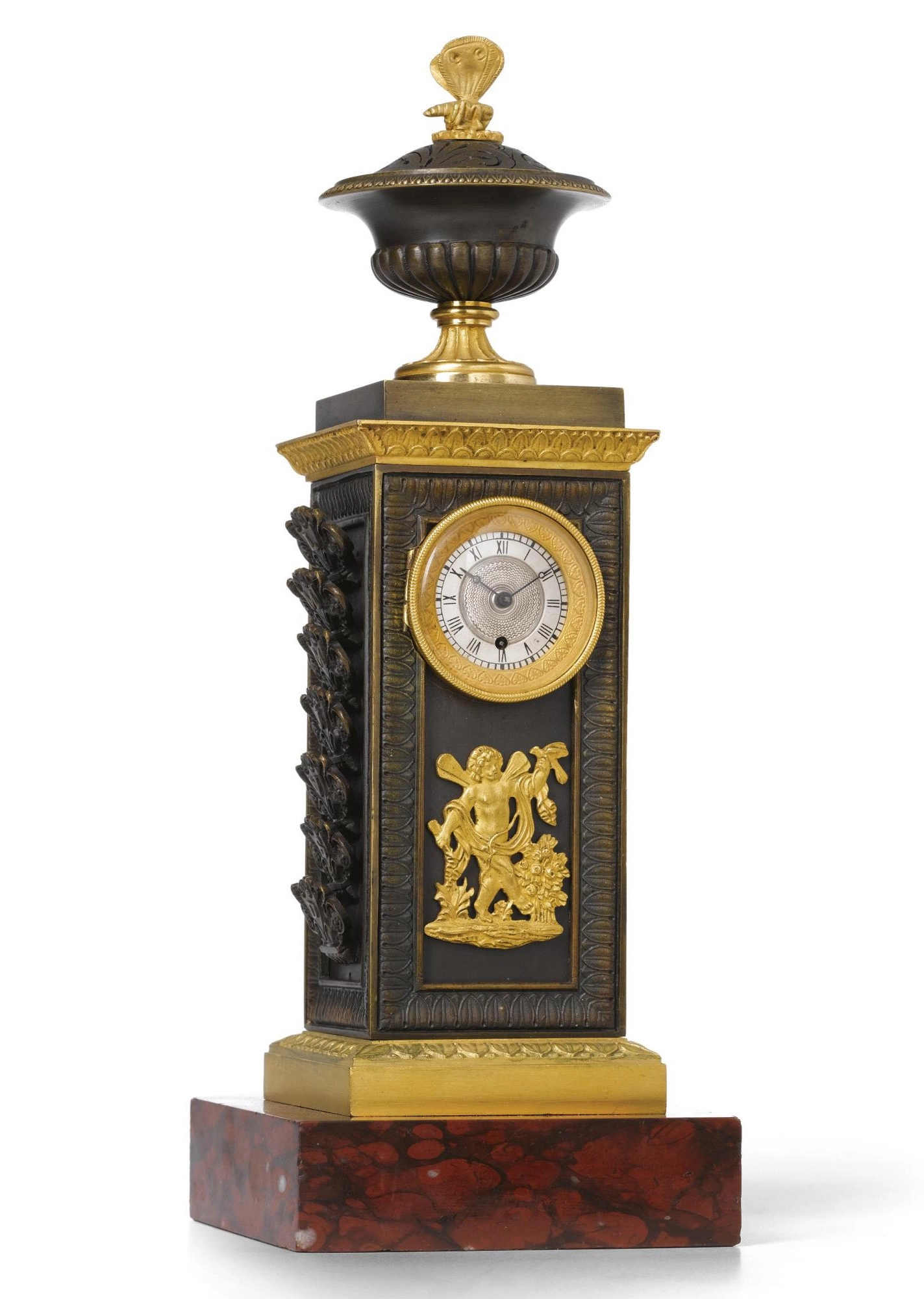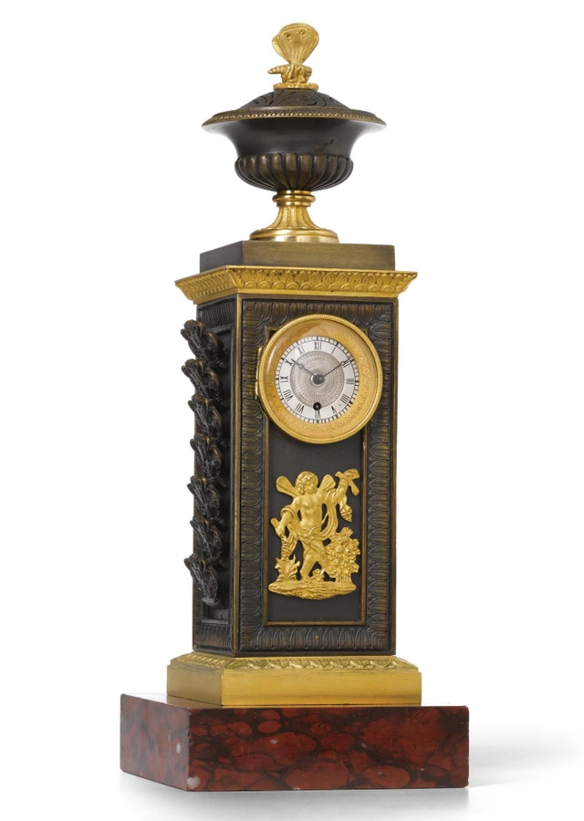 A rare French ‘Directoire’ marble and ormolu mounted ‘au bon Sauvage’ mantel clock, circa 1800