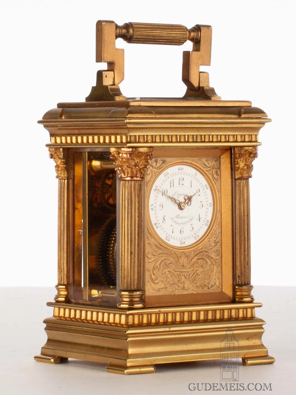 A French gilt gadrooned gorge case carriage clock by Lepine, circa 1880