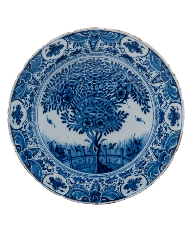 A So Called 'Tea Tree' Charger in Delft Earthenware
