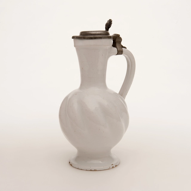 A Twisted Jug with Pewter Lid in White Dutch Delftware