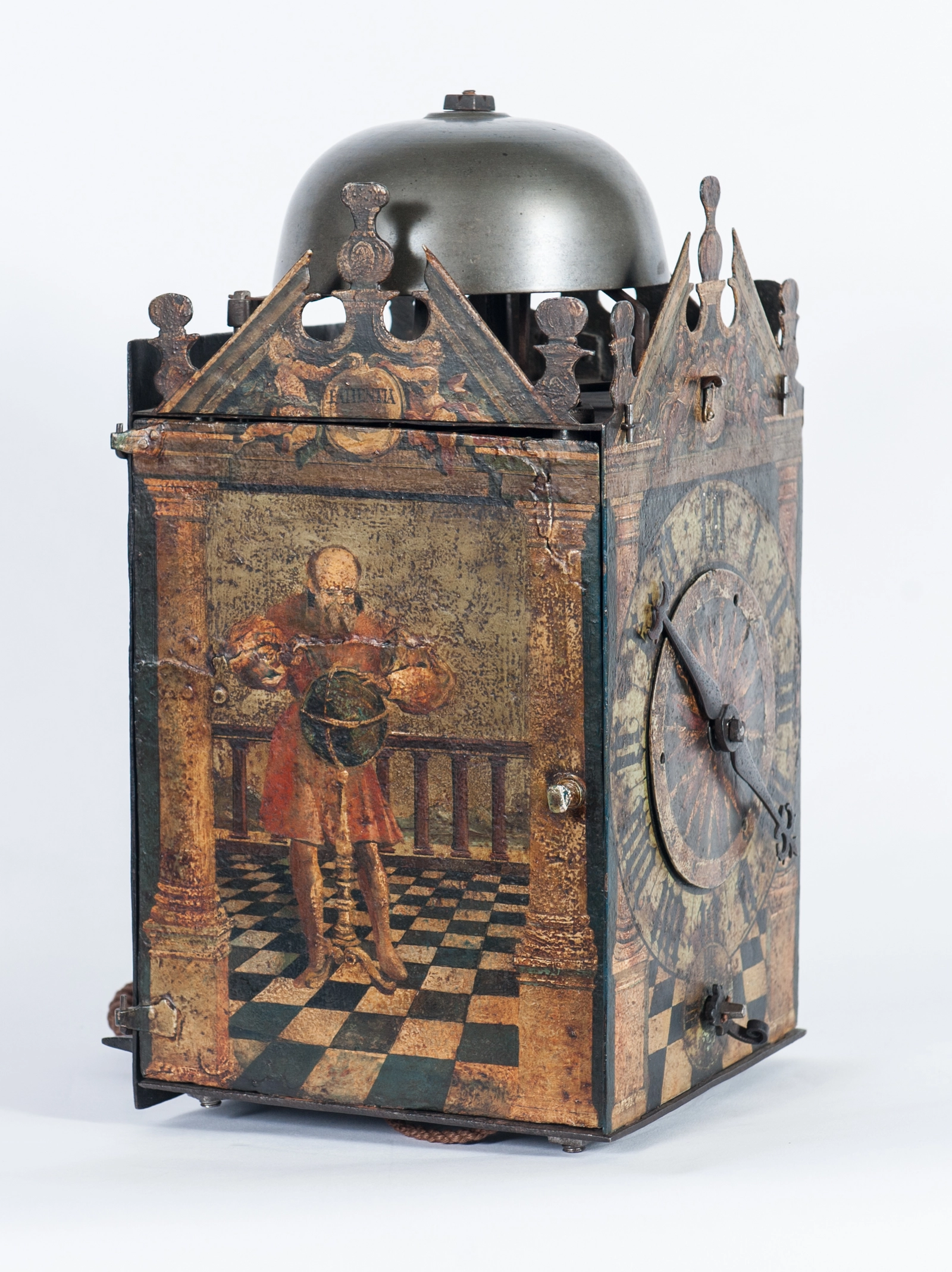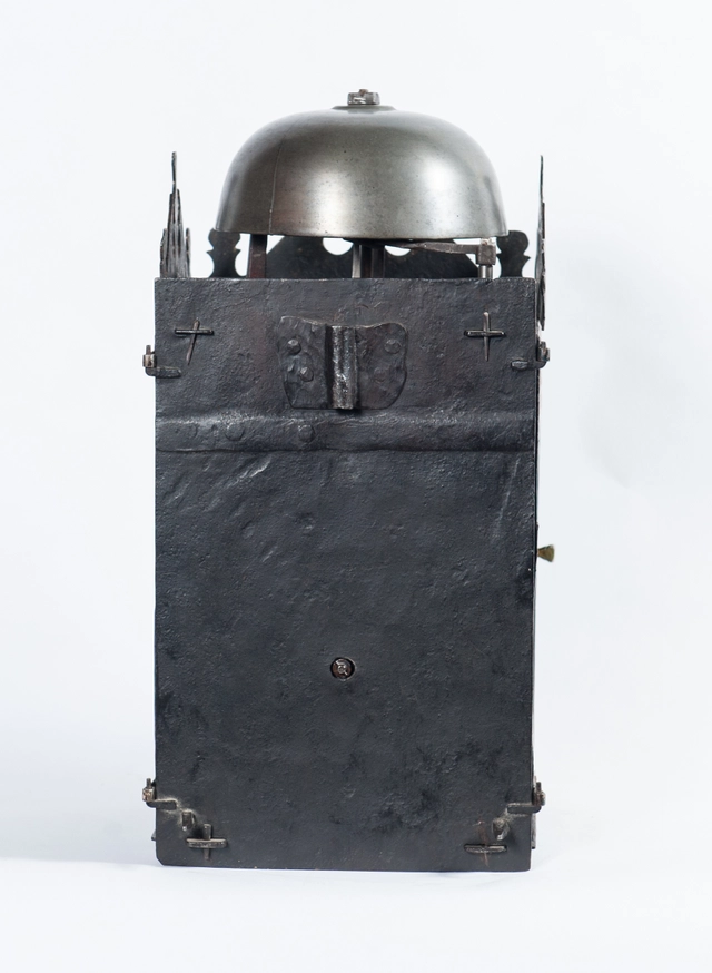 A South-German iron striking renaissance chamber clock with alarm, dated 1608