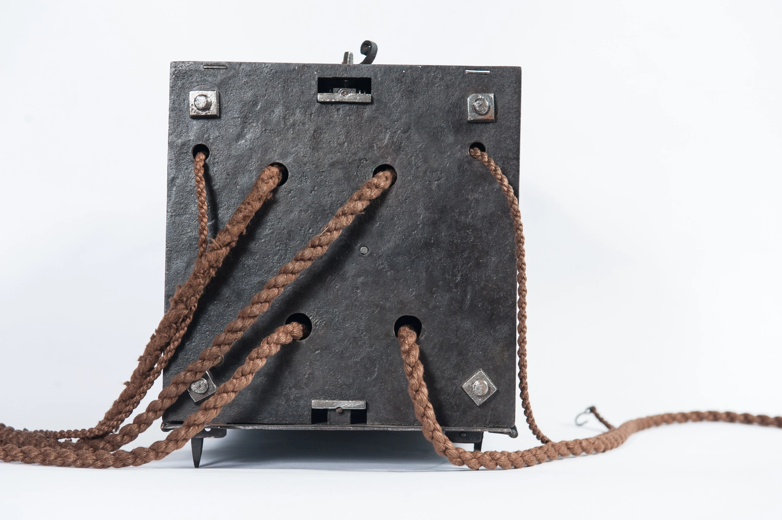 A miniature Austrian brass and iron 'Brettl' wall timepiece, circa 1830