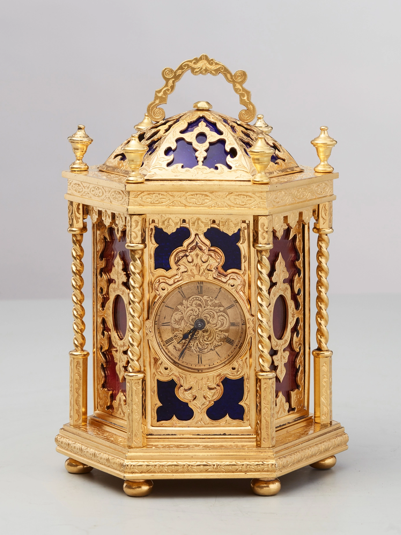 An important English ‘tabernacle’ small travelling clock by Emanuel Brothers, circa 1860