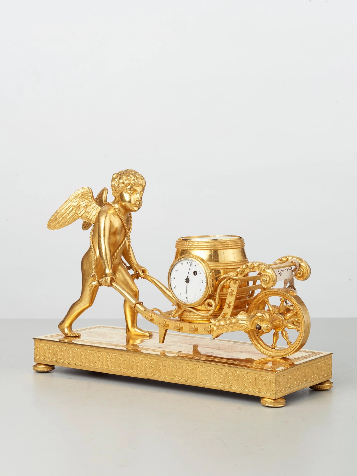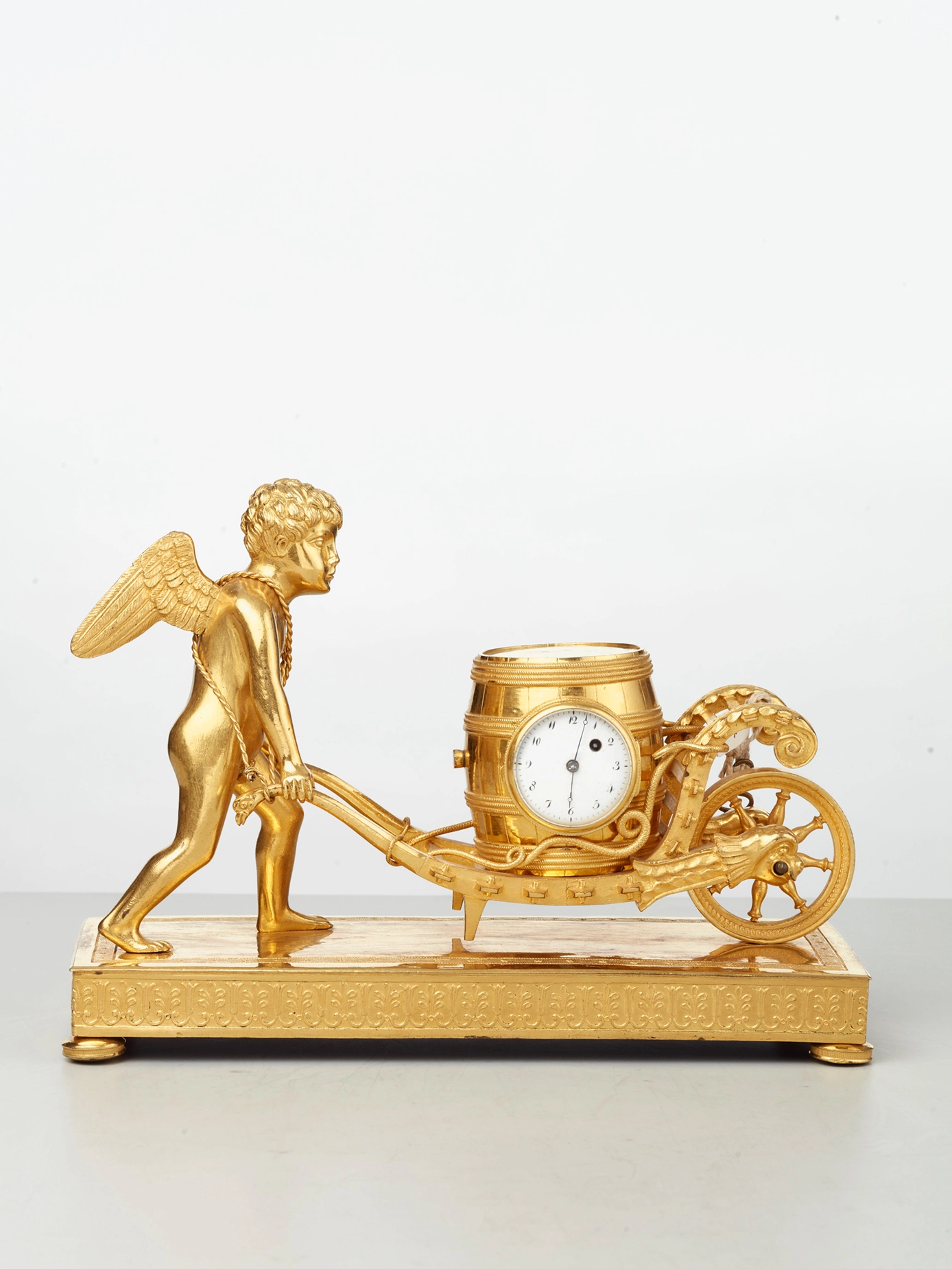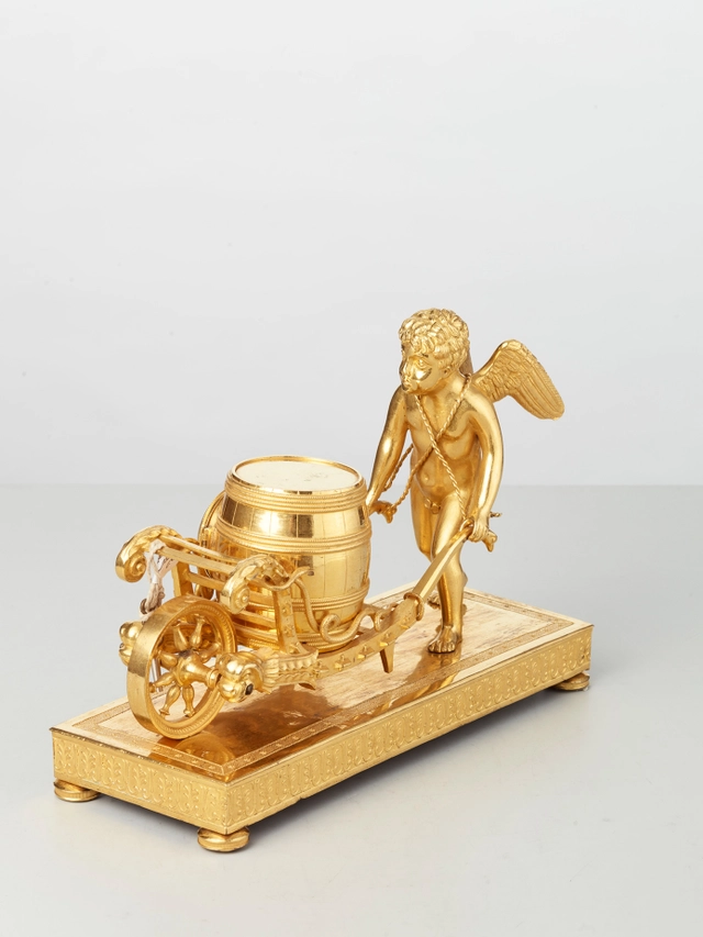 An attractive French Louis XVI ormolu sculptural mantel clock J B Balthazar, circa 1770