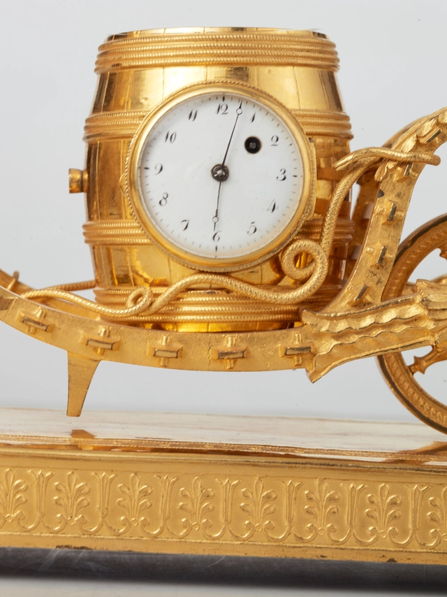 A French ‘Empire’ maple and gilt 4-column clock, circa 1830