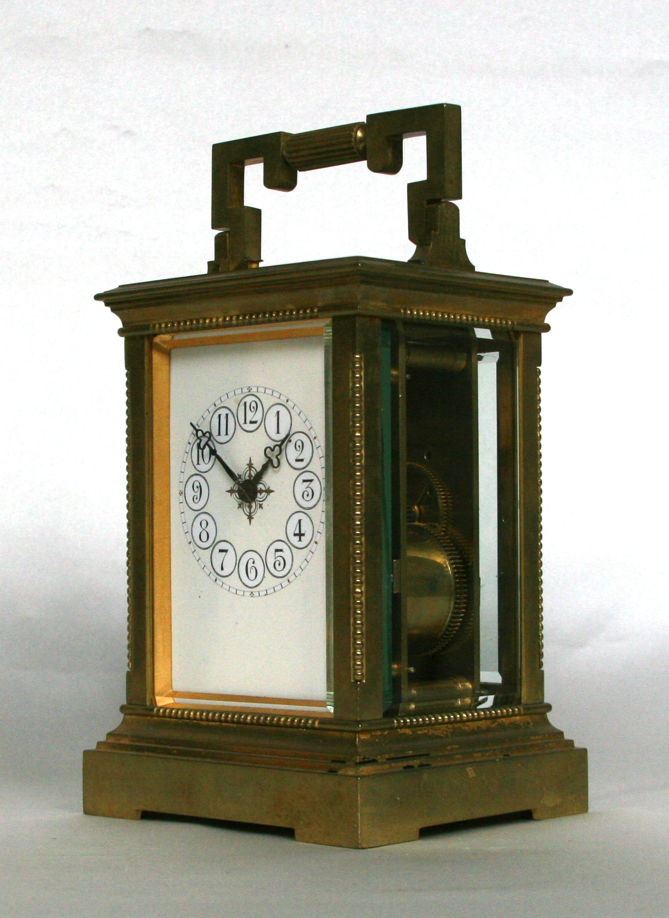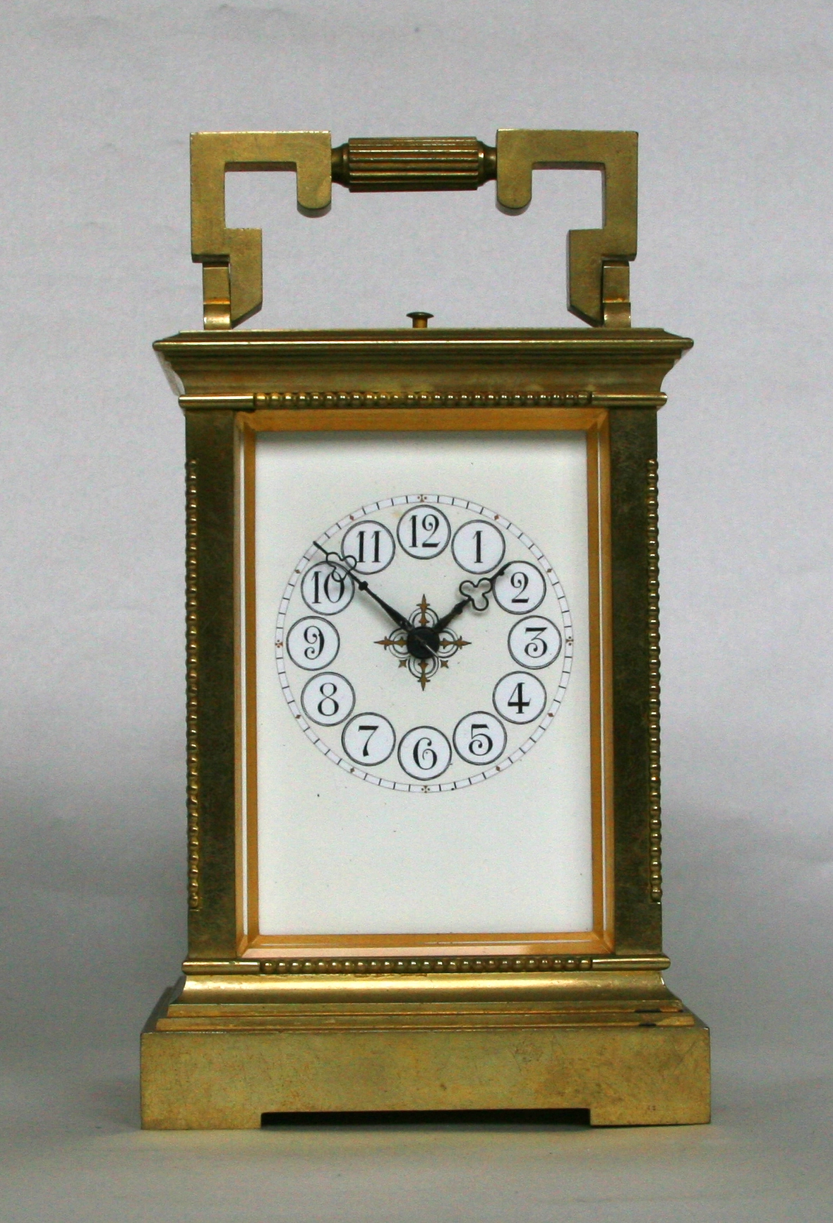 An attractive French brass paste set Anglaise carriage clock with alarm, circa 1900.