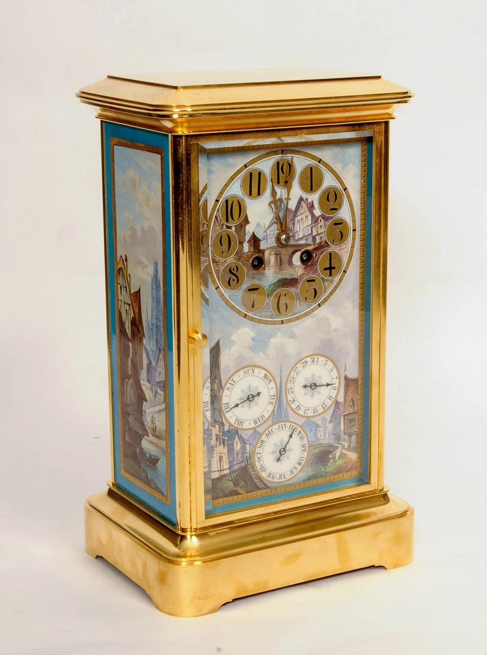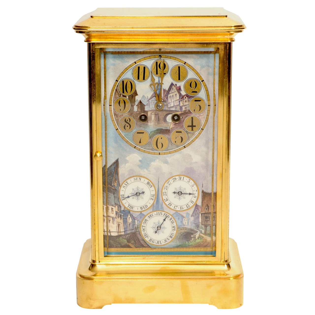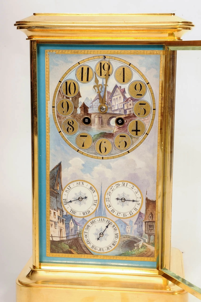 A French Directoire ormolu skeleton clock fine enamel and calendar, Gaston Joly, circa 1795.
