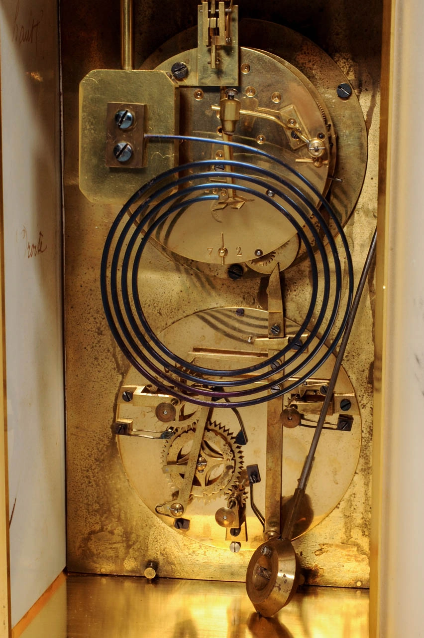 An attractive French Louis XVI-style brass 'pendule d'officier', by E. Bazart, circa 1890
