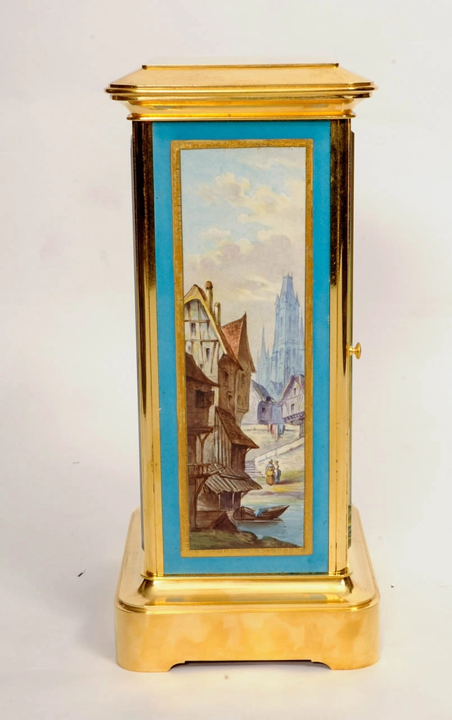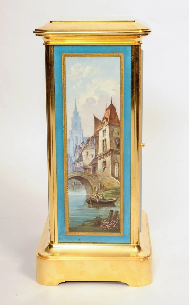 A miniature French Napoleon III Sèvres mounted gilt bronze mantel timepiece, circa 1870