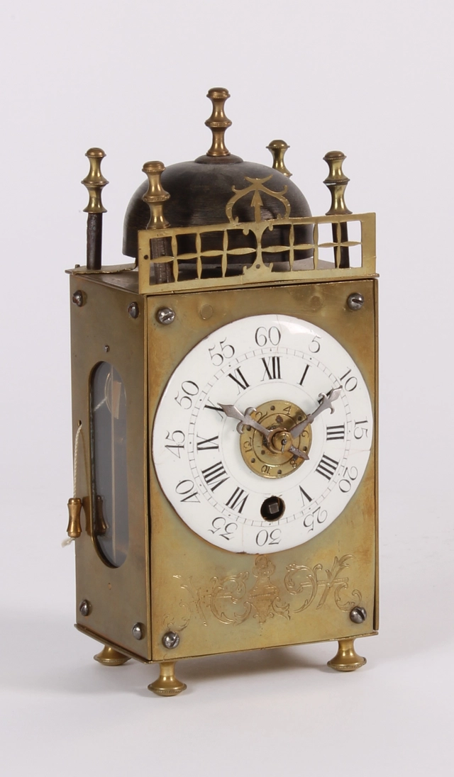 An early English brass engraved Italian striking lantern clock, by John Pleydell, circa 1675