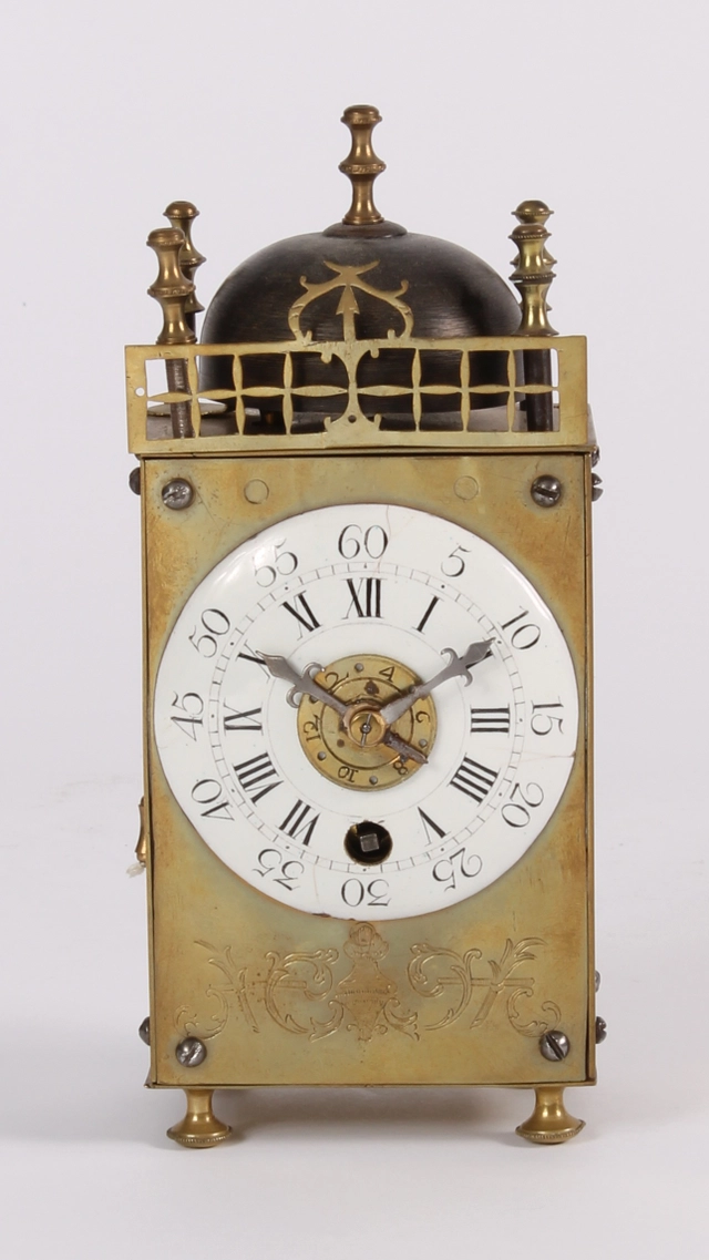 A small French alarm lantern timepiece, by Le Doux, circa 1730