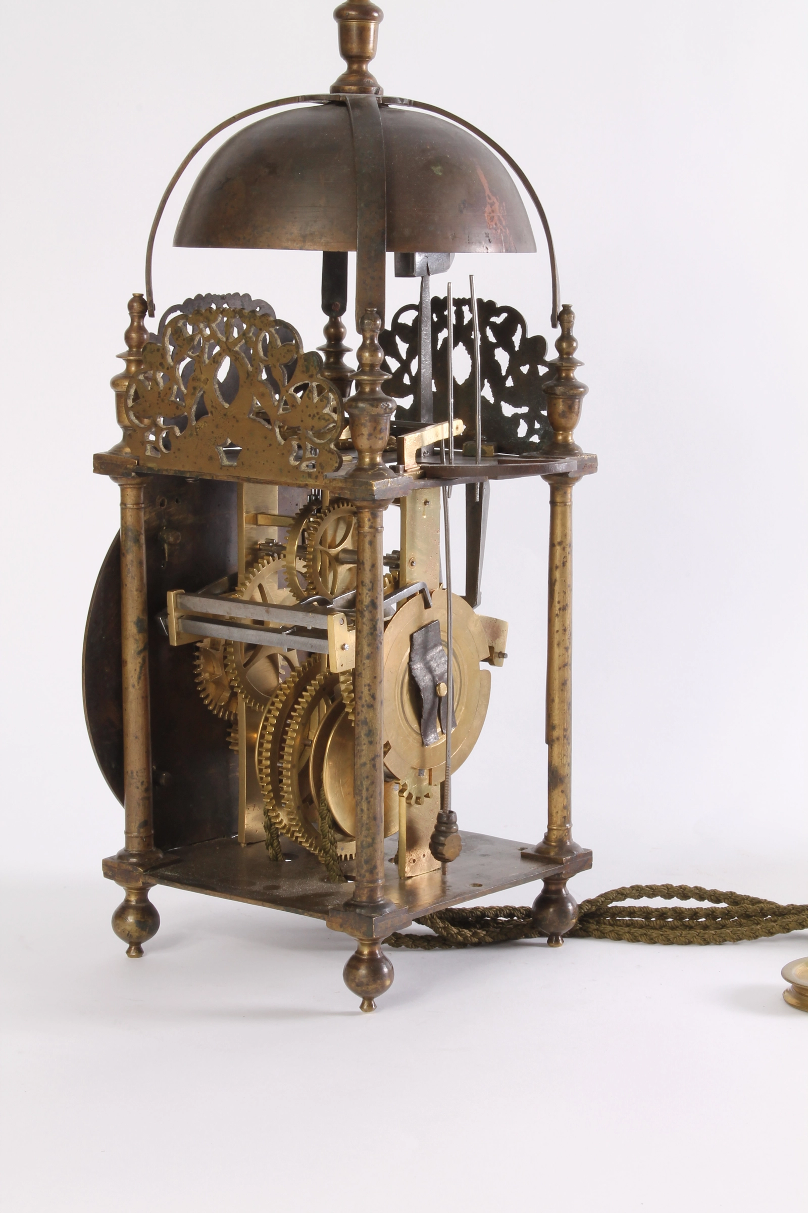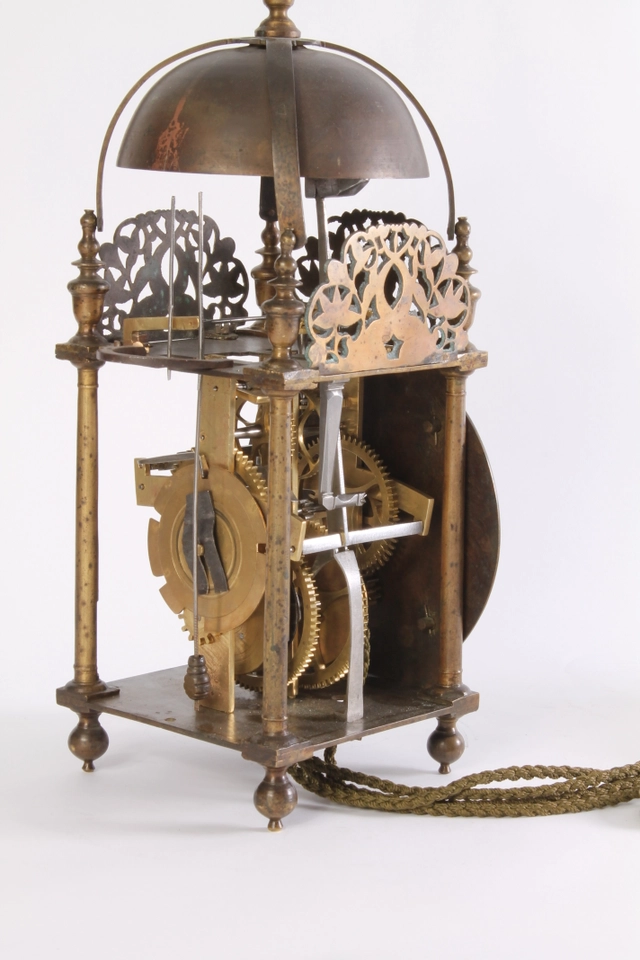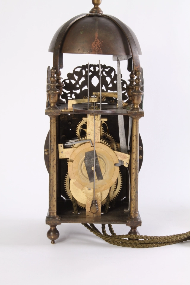 A good French brass striking alarm lantern clock Rouelle A Bayeux, circa 1730