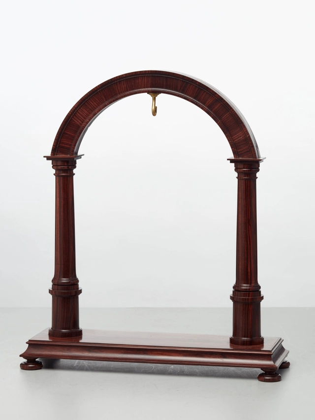 An unusual circular wooden temple dome pillar timepiece clock circa1830