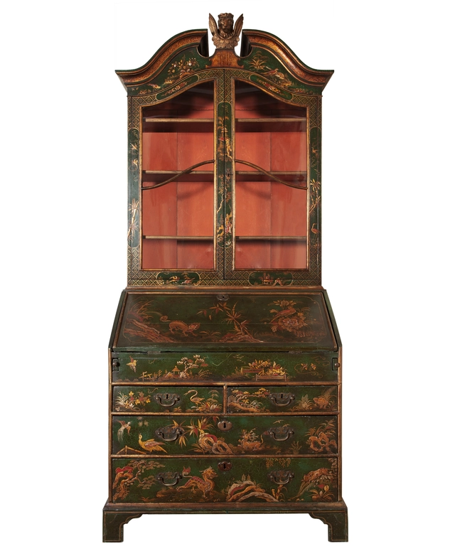 An English Laqué Secretary Bookcase with Chinoiserie Decor