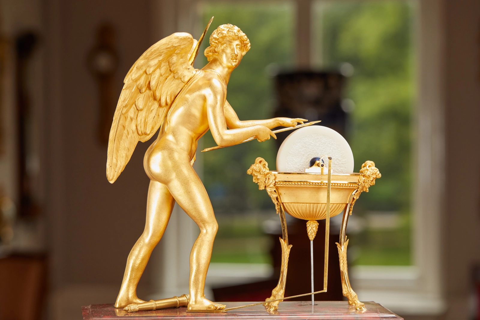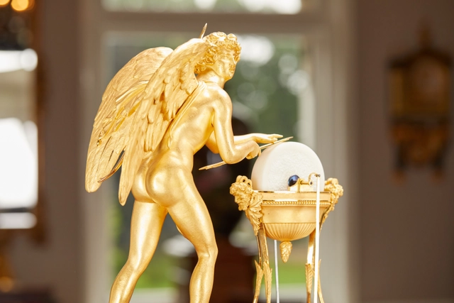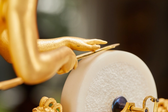 A good French Charles X ormolu sculptural mantel clock, circa 1825.