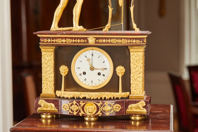 An impressive French Louis XVI-style gilt bronze and marble mantel clock