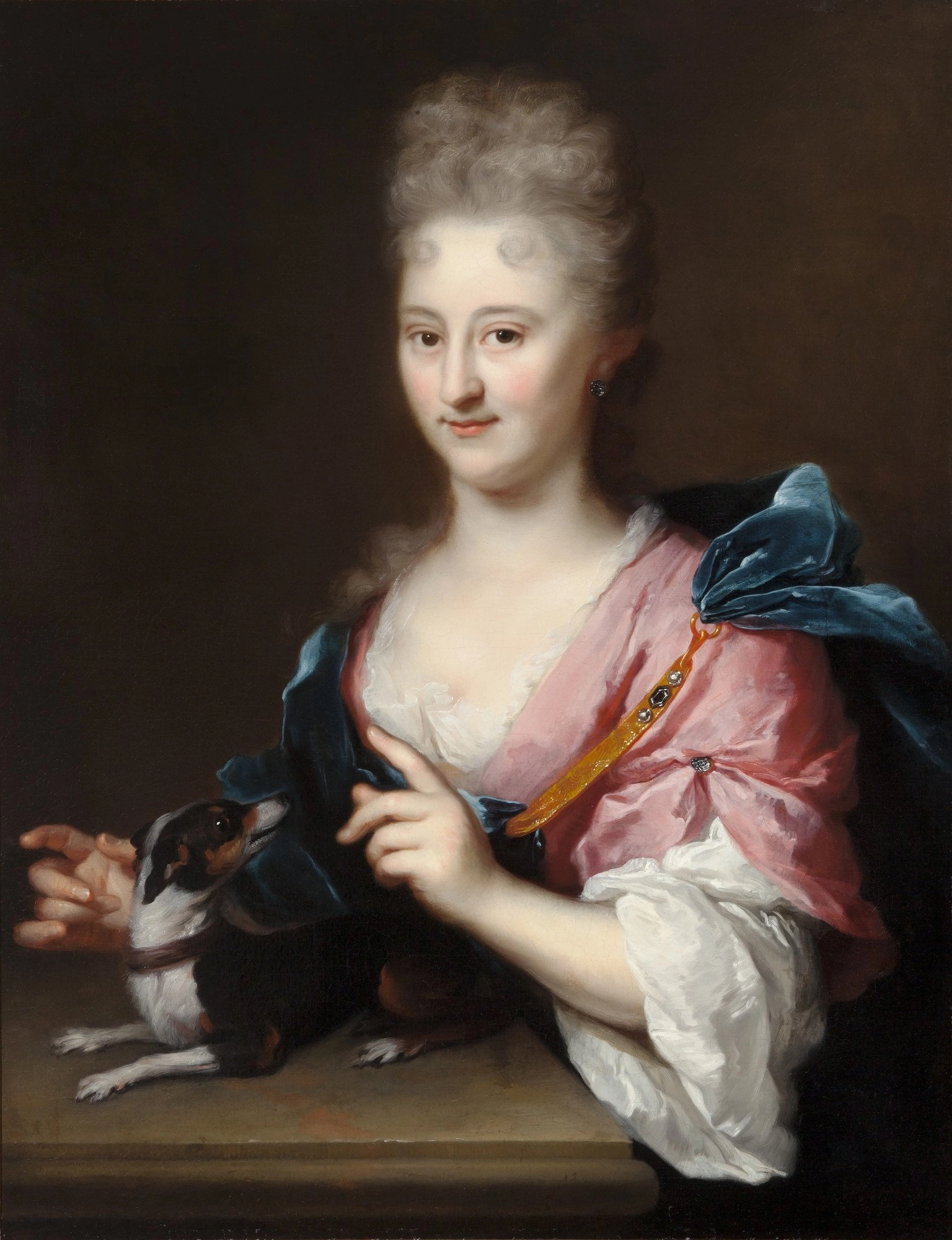 This special portrait of an unknown lady, painted by Arnold Boonen, was probably created around 1715. The portrait can be compared well with a portrait of Maria Six-Calkoen (1674-1728), wife of Jan Six II (1668-1750), which is dated 1714. The bare neck of this lady clearly indicates that Boonen confidently painted the face of the figure, but also continued to paint the body and clothing itself. Boonen usually chooses a pearl necklace as a natural border for a student to paint out the body and clothing .