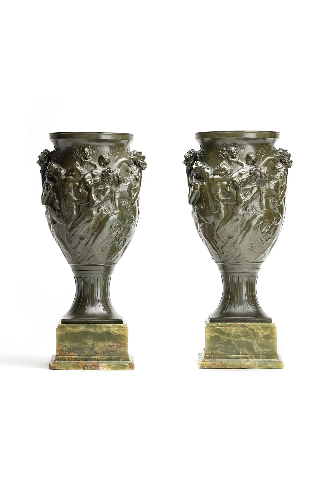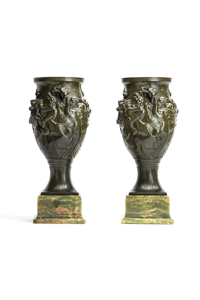 An unusual pair of Art Deco candlesticks featuring Satyrs