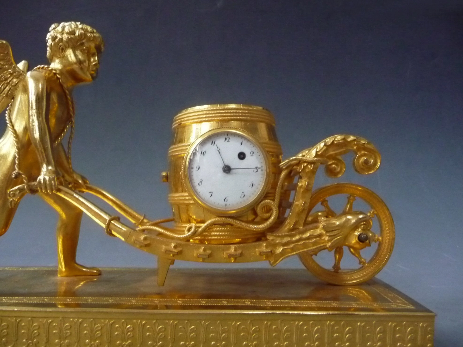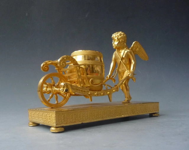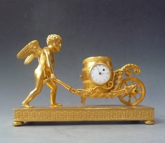 A French Empire ormolu and bronze mantel clock, putti with flower urn, circa 1800