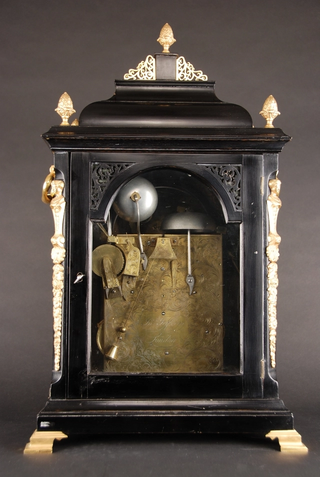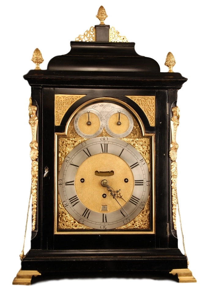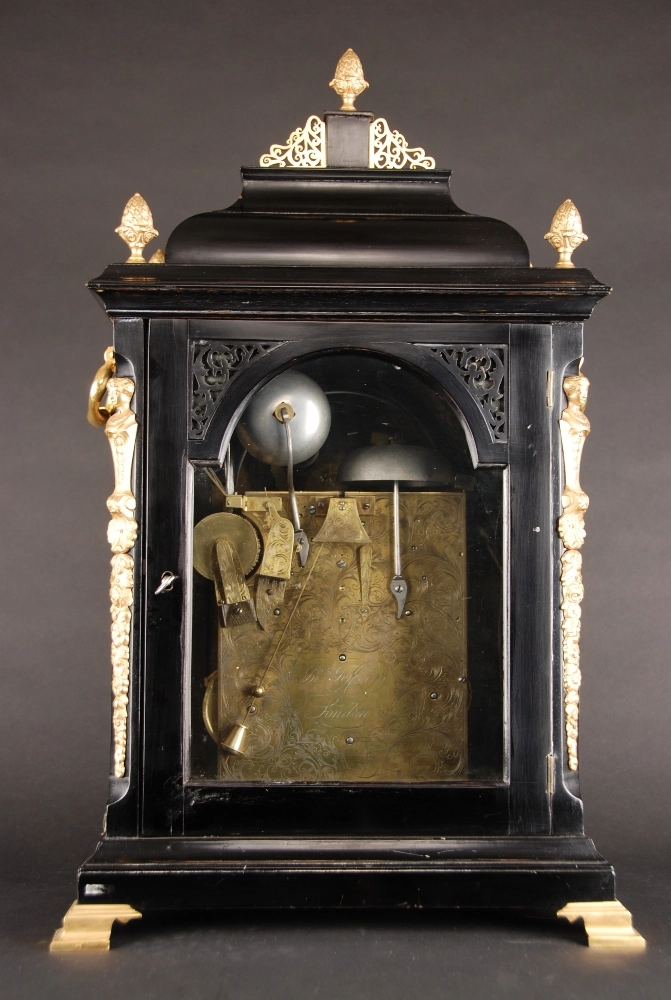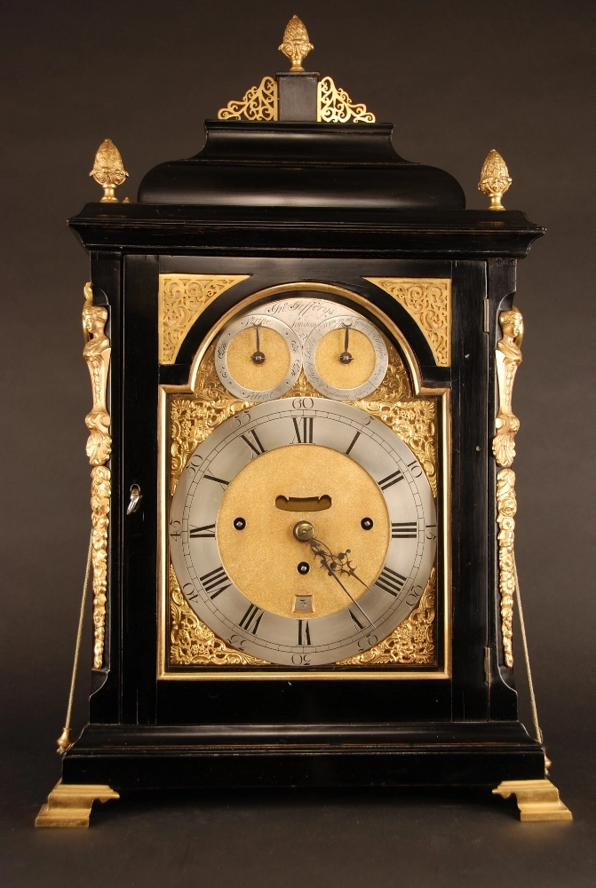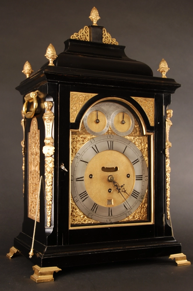 A Dutch ebonised table clock with date, day and moonphase, by J.P. Kroese, circa 1740