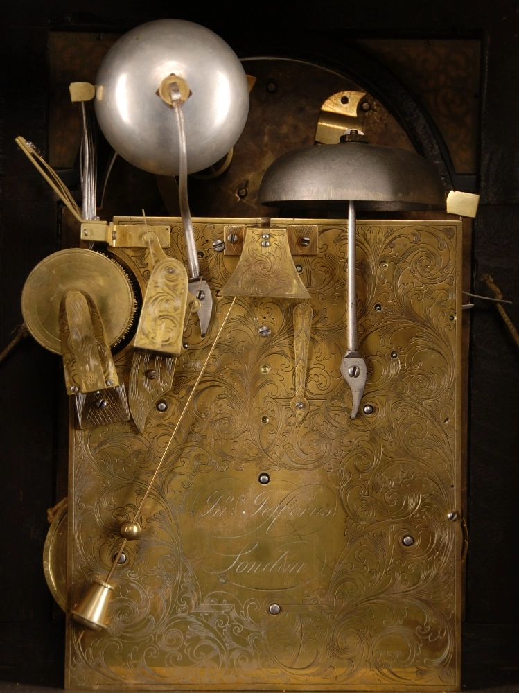 A Dutch burr walnut longcase clock with rare ‘swing automaton’ by M. Buys Amsterdam, circa 1775.